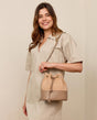 With the adjustable and detachable leather shoulder strap, the "Nuria" bucket bag can be worn either over the shoulder or crossbody as desired. The comfortable, thoughtful closure with a leather drawstring and gold-colored eyelets not only provides security but also maintains the casual, relaxed style. Inside, the bag offers a generous layout with a zippered compartment and two open slip pockets to help you keep your belongings organized and secure. The soft lining and the incorporated Gusti logo label crown the design. Perfect for any occasion, whether in everyday life or for special occasions.