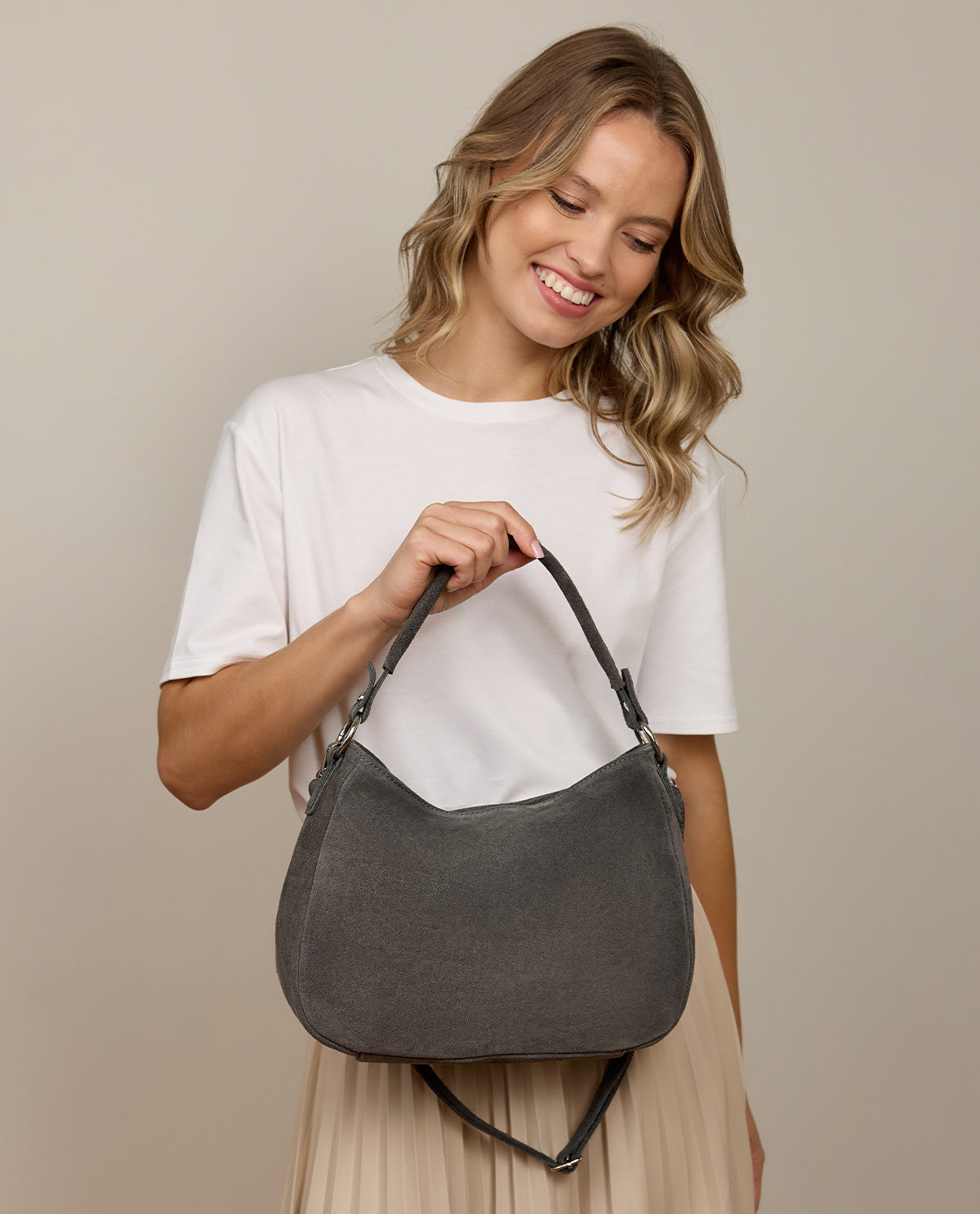 Handbag shoulder bag tote bag womens grey leather - Made in Italy