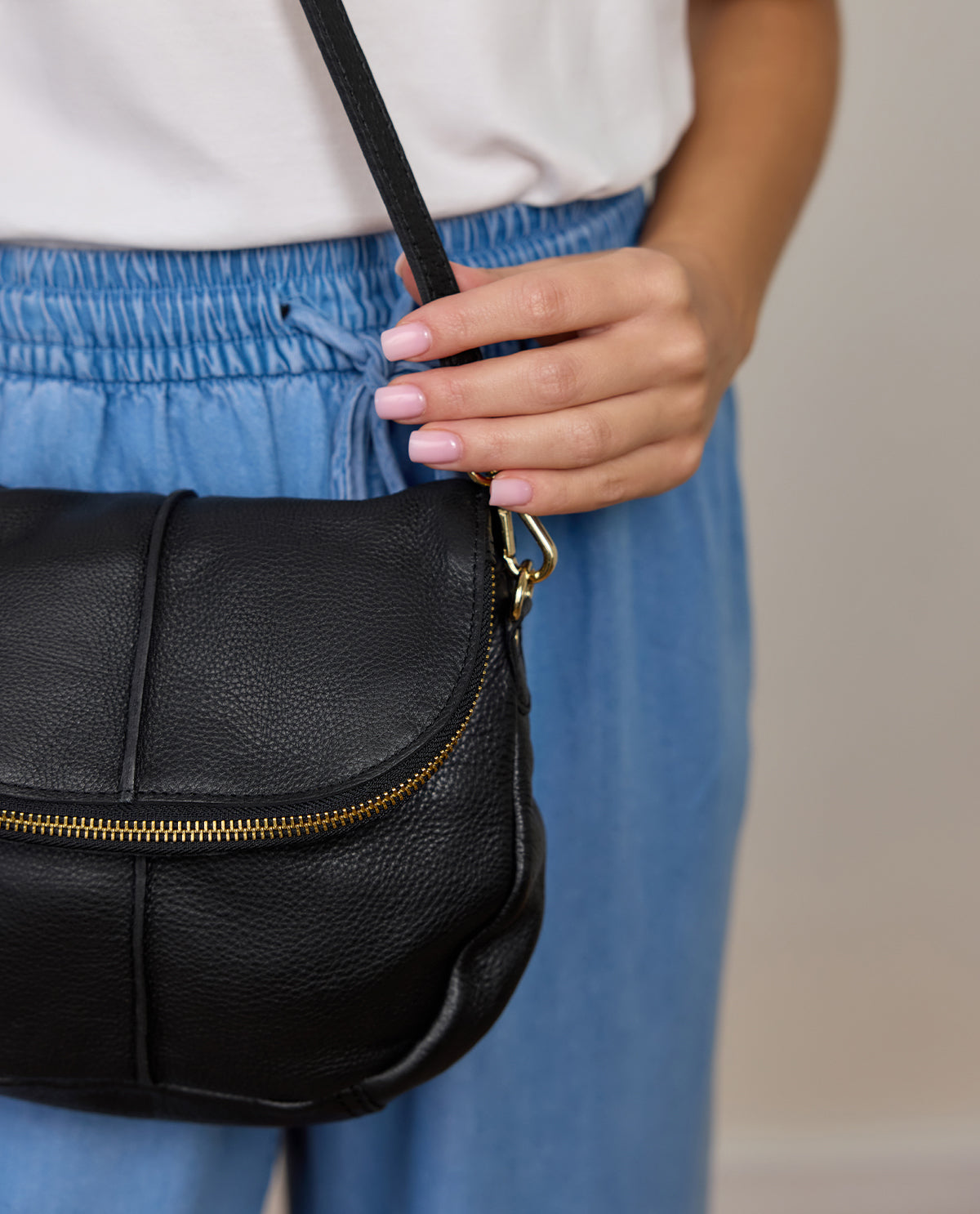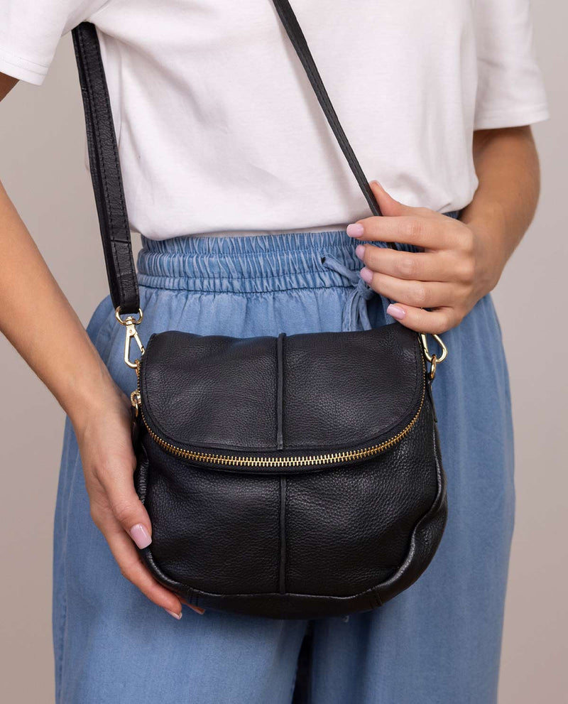 Our classic black bag "Iselin" is the perfect companion for the modern woman. Its simple yet stylish design is elegant and practical. "Iselin" has two carabiner hooks so easy to attach the strap, she also has a sturdy metal zip that secures your belongings, making this handbag safe and practical.