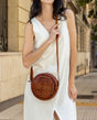 Are you looking for a unique bag that exudes casualness and sophistication? Say hello to "Gabriella". This round brown shoulder bag will win you over with its rustic braided design and metal detailing. Thanks to its compact design, this handbag is the perfect everyday accessory and adds a unique retro touch to any outfit.
