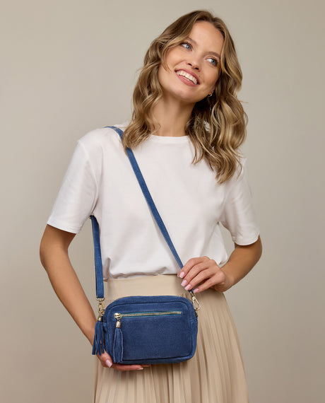 Storage bag organiser small leather bag womens blue leather - Made in Italy