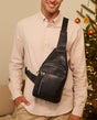Vegetable tanned belt bag shoulder backpack bum bag leather bag sling pack black leather