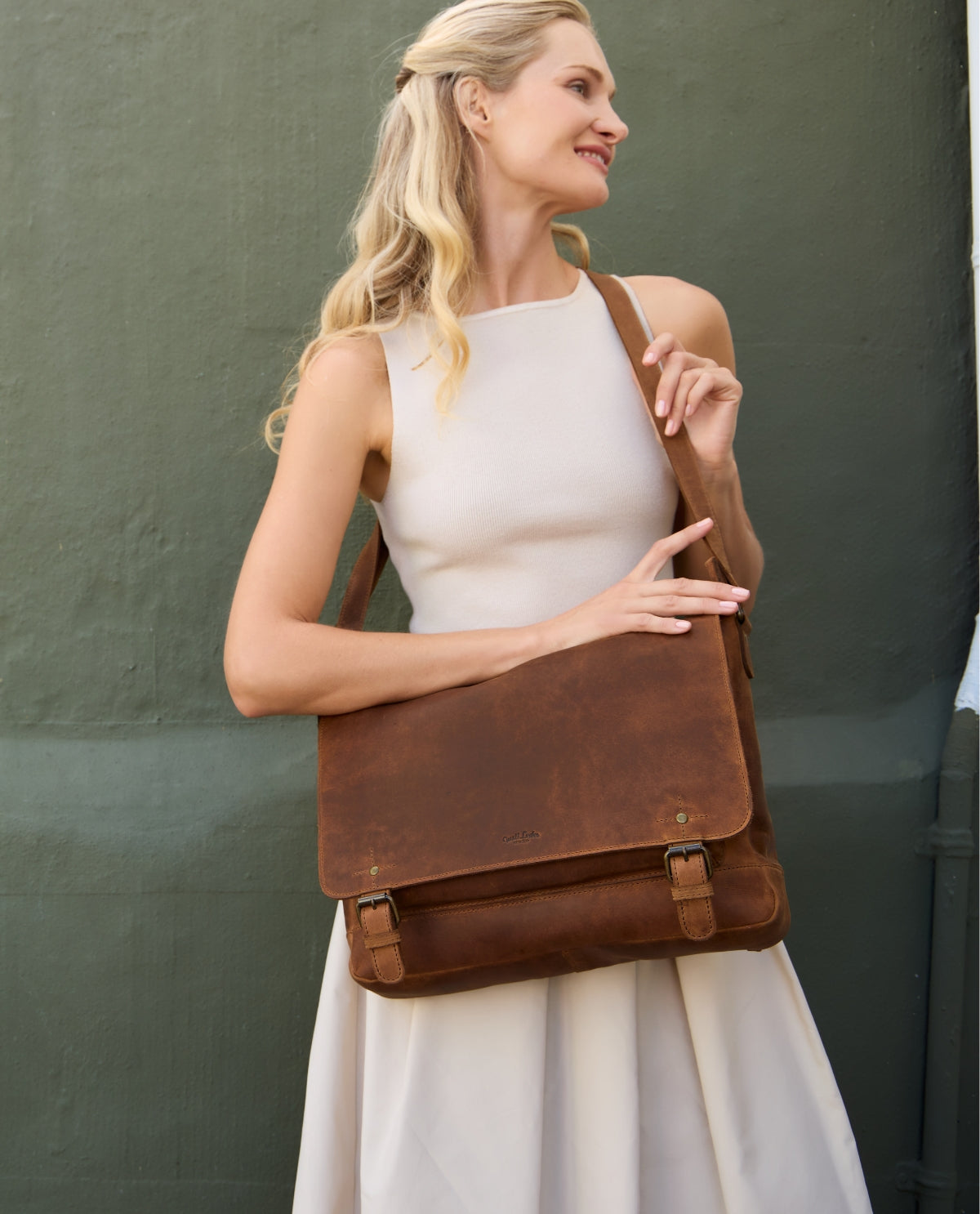 “Brin” proves pleasantly adaptable even on the go. The adjustable shoulder strap ensures comfortable carrying in everyday life, while the additional strap for bike rides keeps the bag securely against your body when you’re on the move. For travel, a suitcase strap with a snap fastener is integrated, allowing “Brin” to be conveniently attached to a trolley. An exterior zippered compartment gives you quick access to items you need immediately, without having to reach into one main compartment every time. Inside, an engraved patch adds a personal touch to the bag. This makes “Brin” a leather business bag that seamlessly combines everyday life, mobility, and organization in a calm, thoughtful way.