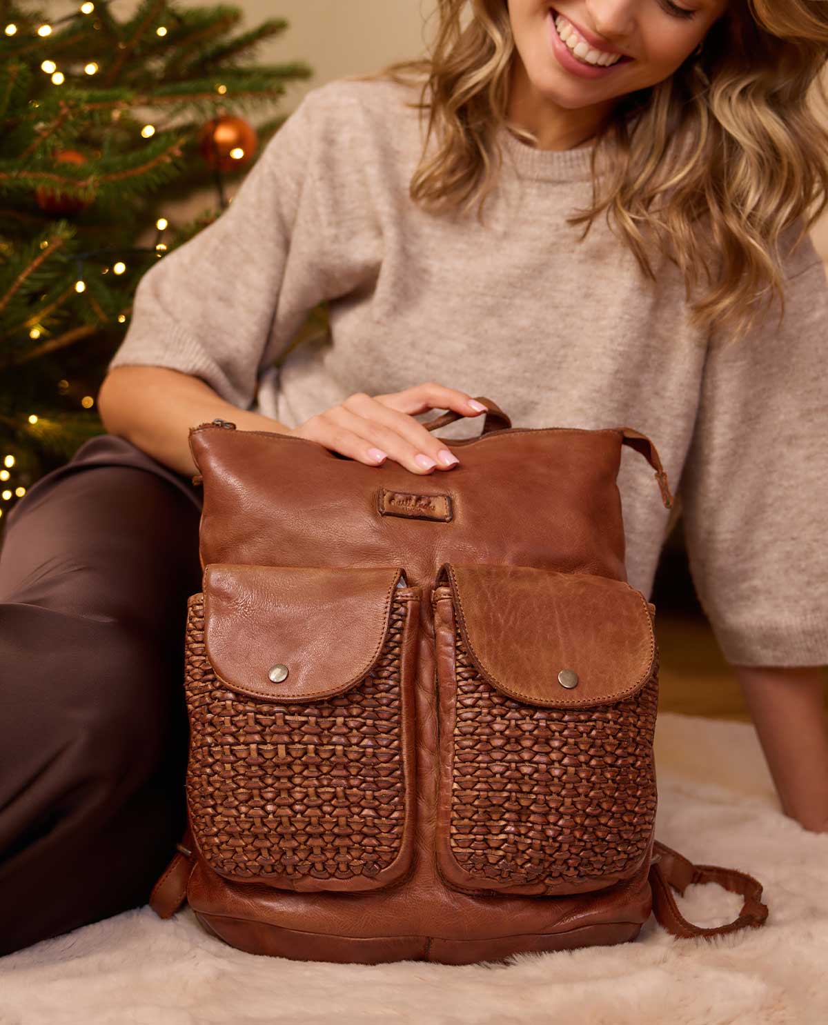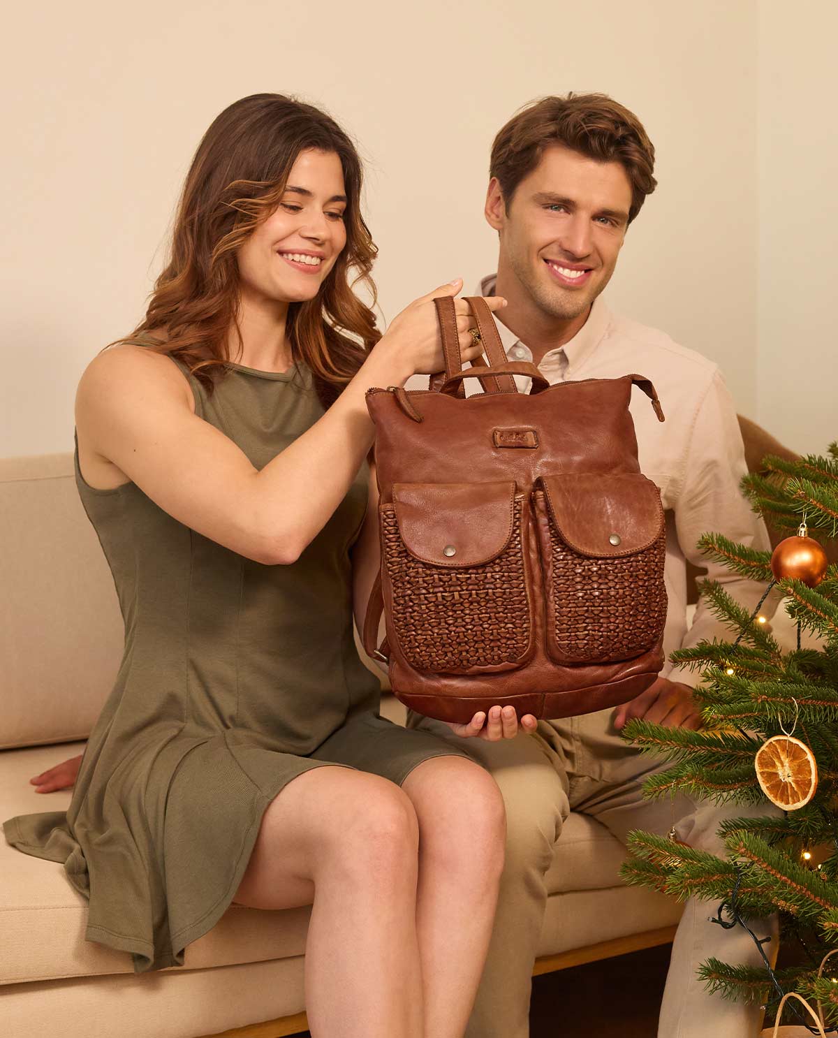 The "Aileen" backpack combines functionality with a modern, timeless design and is made of high-quality, washed leather that gives it an authentic vintage look. Inspired by the vibrant Berlin metropolitan flair, this backpack stylishly accompanies you every step of the way – whether in everyday life, traveling, or at work. Its robust construction guarantees durability, while the thoughtful design ensures an elegant appearance. Additionally, "Aileen" features an integrated AirTag compartment, allowing you to easily locate your backpack at any time.