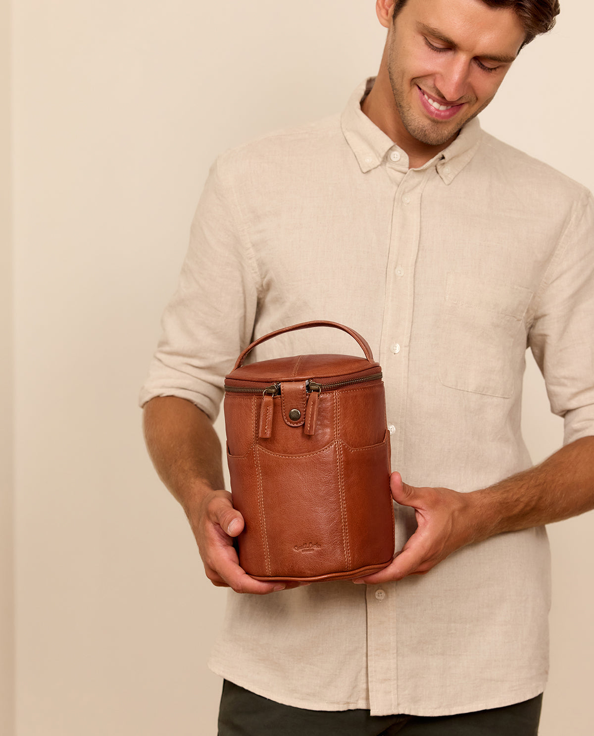 The "Corvin" is the ideal crochet bag for passionate craft enthusiasts who want to keep their tools always organized and within reach. Made from high-quality leather, it not only offers a noble and timeless appearance but also a durable structure. This knitting bag provides you with a large compartment with several smaller pockets, which are perfect for your crochet hooks, knitting needles, and small accessories. So you always have everything in its place without anything getting lost.