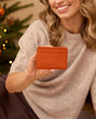 The "Qani" card holder is the perfect choice for anyone who values organization and elegance. Made from high-quality orange leather, it impresses with its compact size and elegant design. The noble color and fine craftsmanship make it a stylish accessory that is not only functional but also a real eye-catcher. With this card holder, you always have everything important with you – and in the best quality.