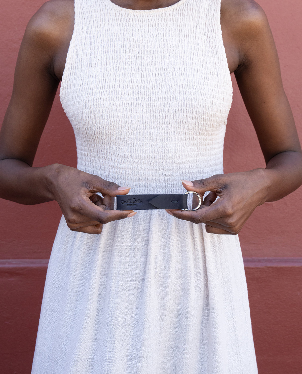 Hand-stitched keychain with engraving option