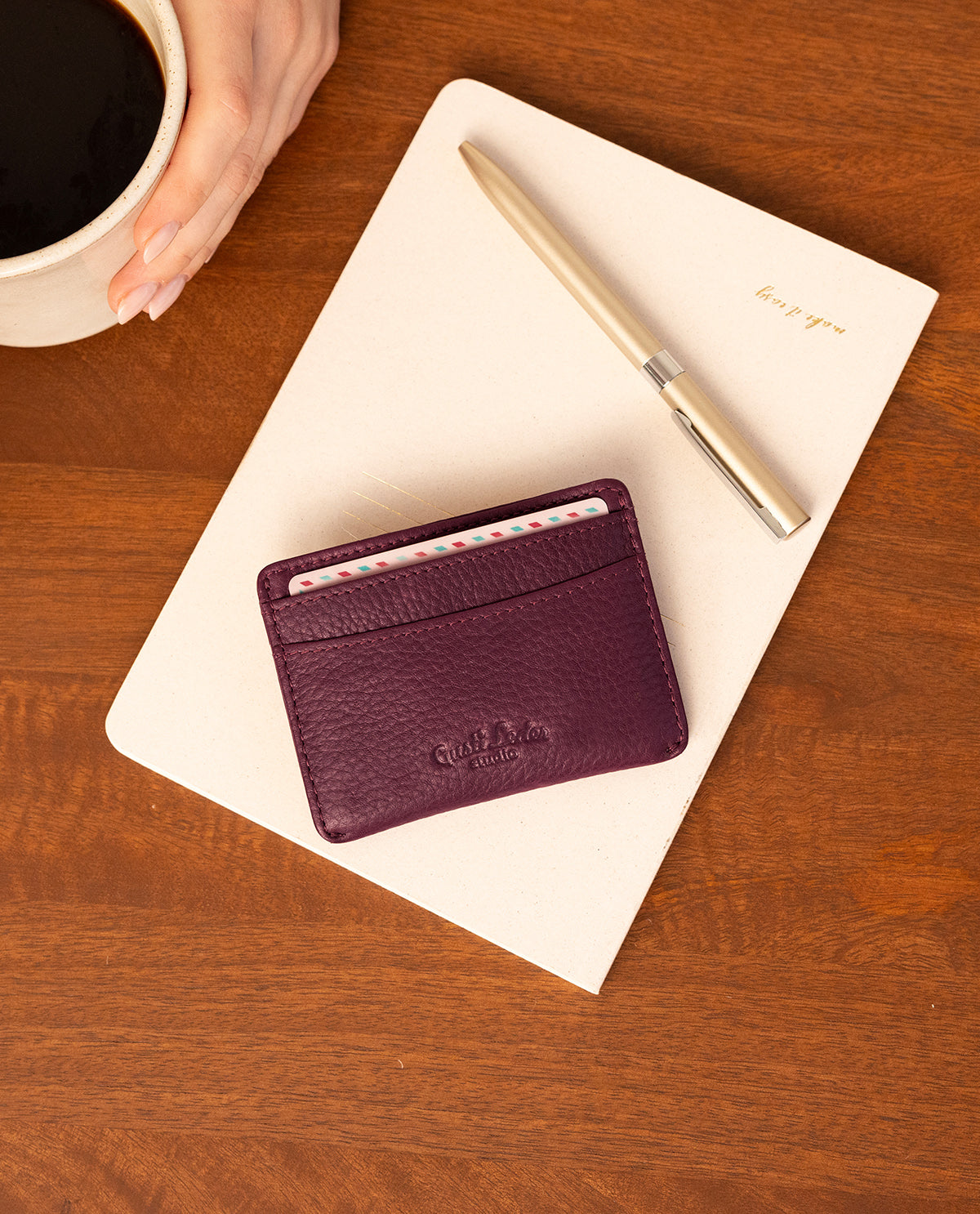 Practical and stylish – the "Qani" card case made of purple leather