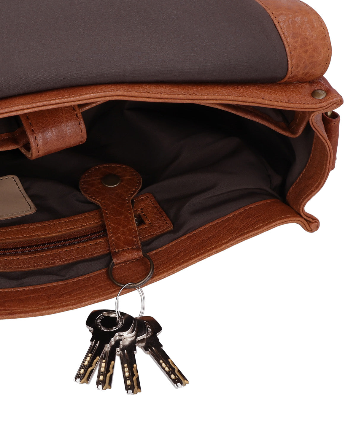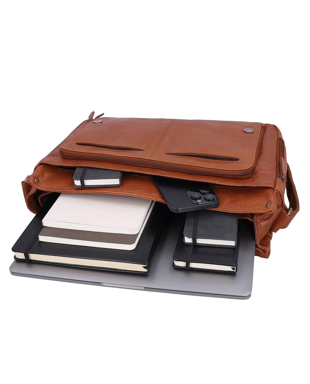 The Florin briefcase is a well-designed leather business bag for men and women who want flexibility in their everyday lives. An integrated AirTag compartment provides additional security, while an additional strap has been specially designed to keep the bag securely in place when cycling. This means that Florin stays reliably in place even when you're on the move. A practical key holder helps you keep your most important essentials within easy reach, complemented by a secret zippered compartment on the side for items you want to store discreetly. This leather laptop bag combines mobility, security, and clear structure.