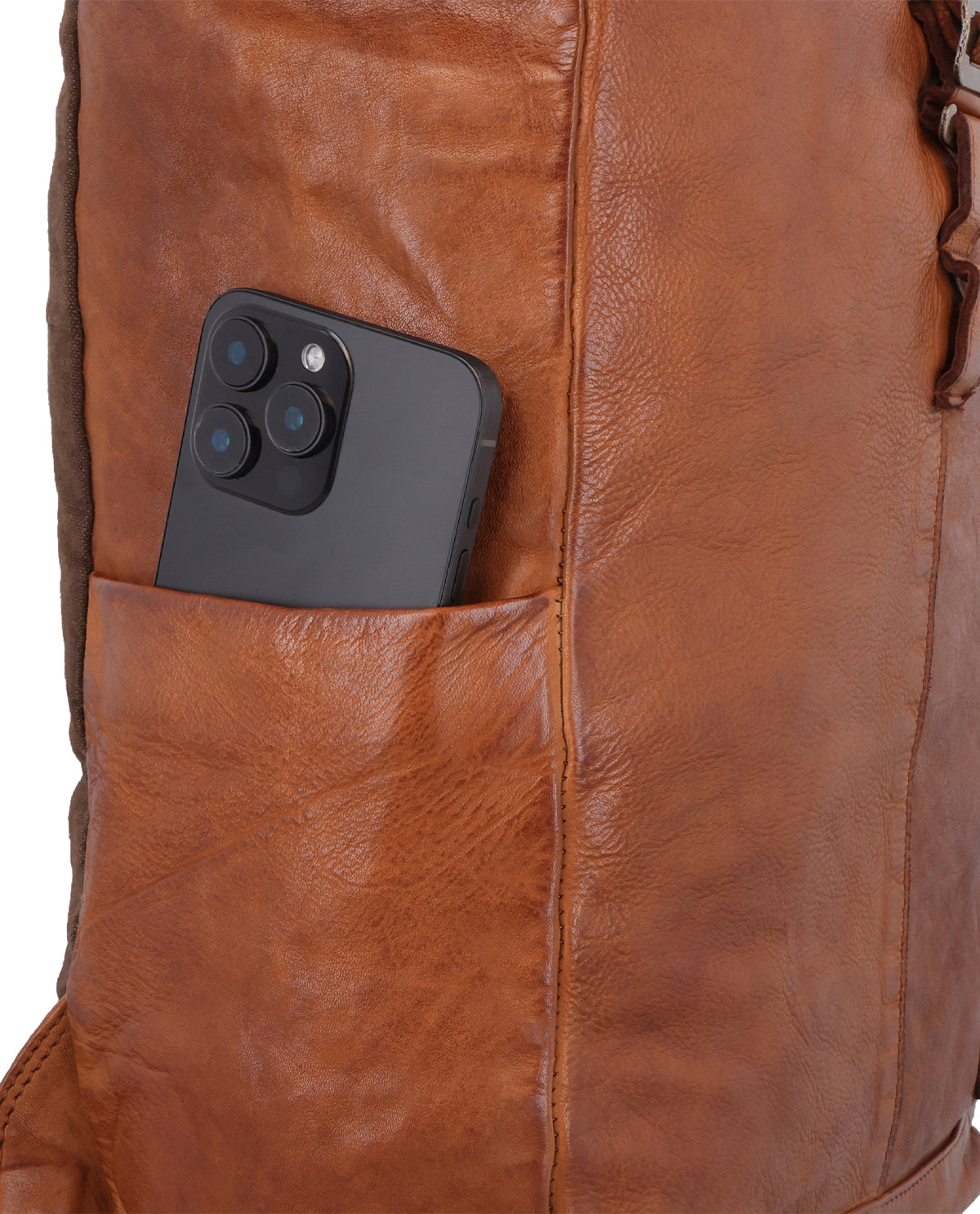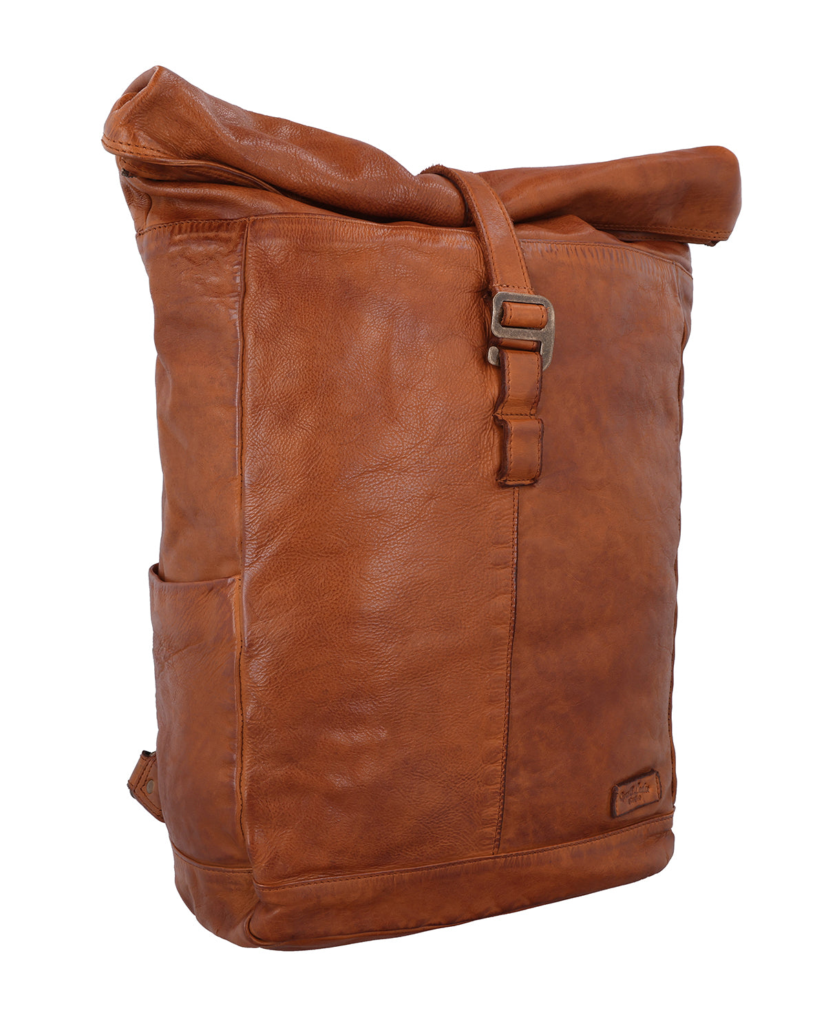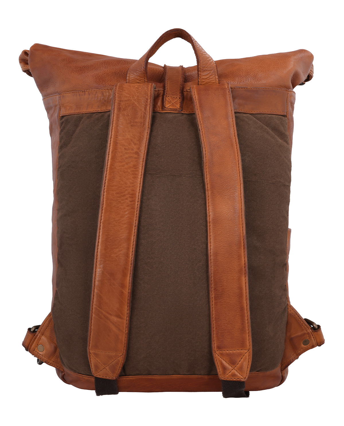 Our “Bendik” rolltop backpack is the perfect companion, no matter if you’re going to school, uni or work. He’ll win you over with his flexibility, comfort, and space. This sturdy, classic daypack made of brown leather stands out from the crowd with its trendy rolltop—a look that you just can’t ignore at the moment.