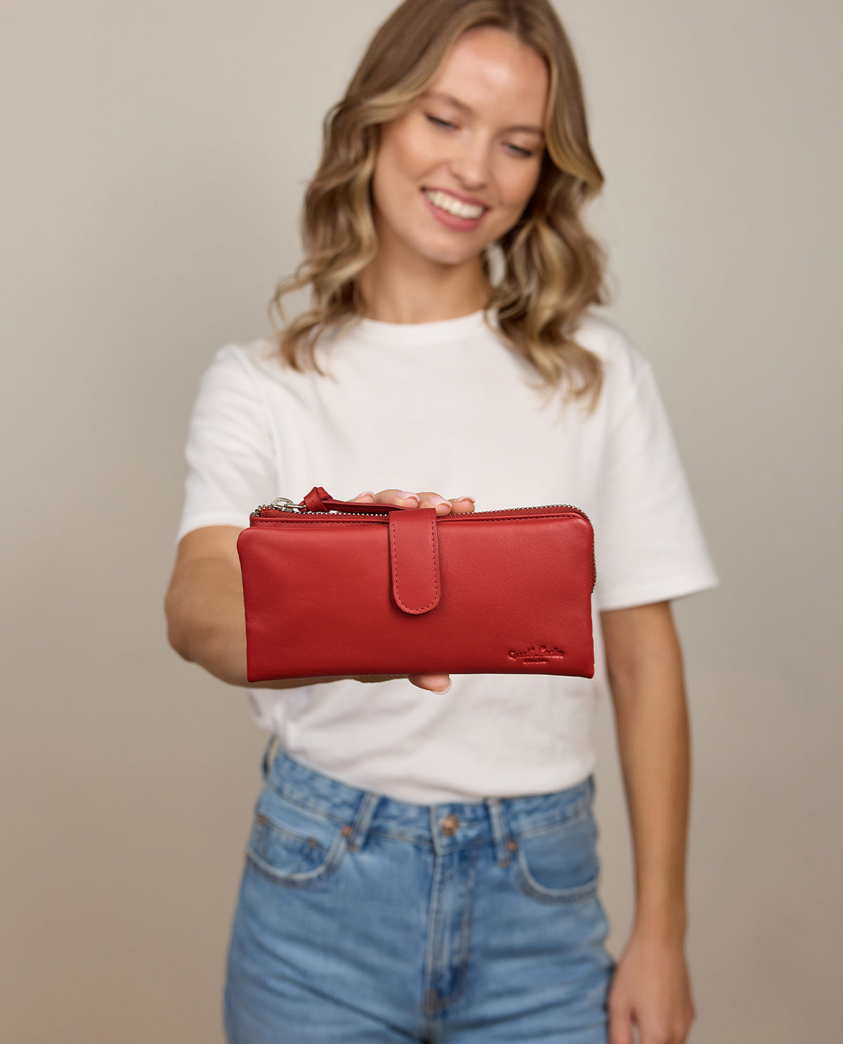 Wallet purse womens wallet long wallet coin pouch womens vintage red leather