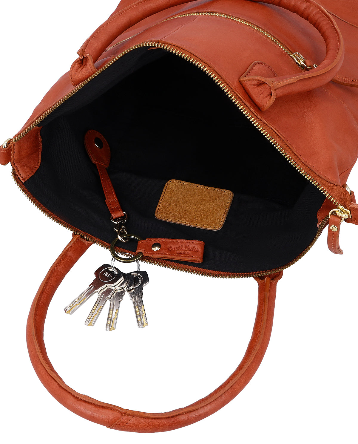 Do you want to make leather favorite "Mia" unique? No problem! Inside, a leather patch has been added where you can have a name or a short text engraved! Also perfect as a gift.