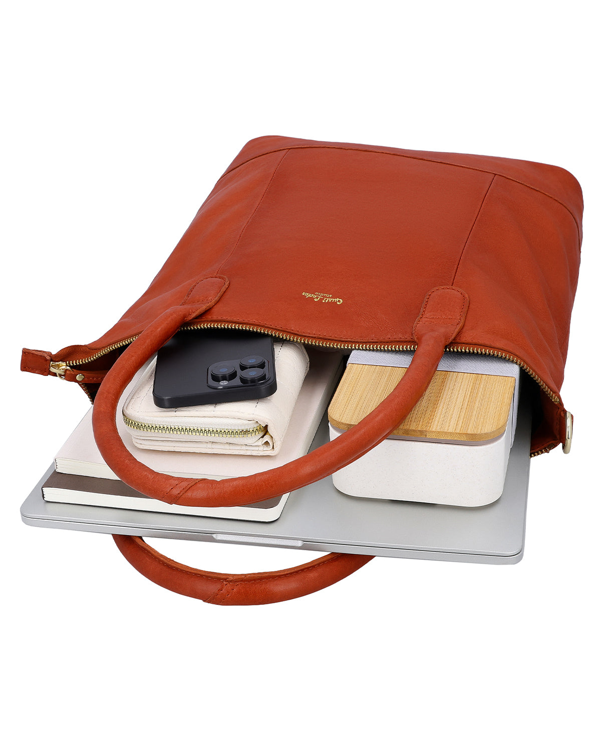 Tote bag shopper handbag shoulder bag zip brown leather
