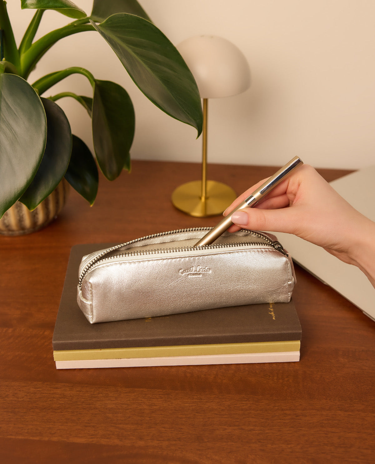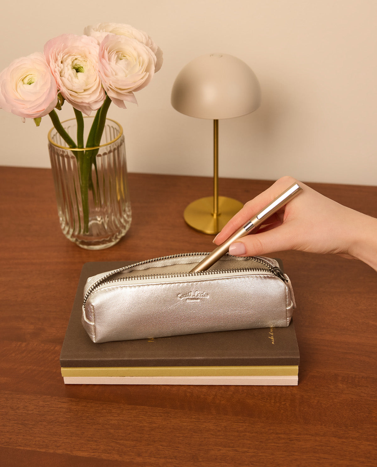 This high-quality leather pencil case doesn't just look good, she's super useful too. Quality that you can see and feel. Your favourite pens are kept safe by the zip, so you can take them with you when you're on the go.