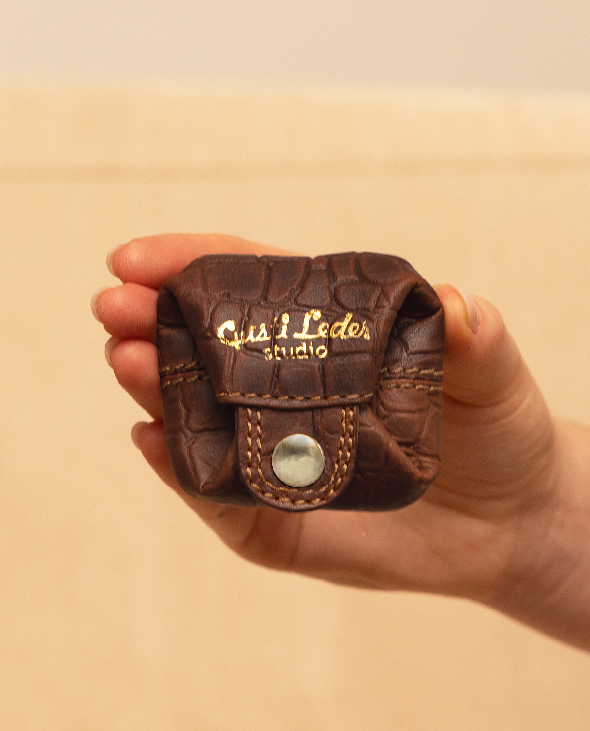 A petite purse is super handy at large public events. “Linus” is the perfect companion for any occasion - from folk-music festivals to seeing your favourite band live. It doesn’t get any smaller than this! This handy and practical coin purse keeps your coins safe in your pocket, helping you avoid losing your money all over the floor. This petite coin purse is made from high-quality finished leather and is the perfect companion for any event. Keep your coins safe using the metal press button - so you can dance the night away and not have to worry about losing your cash!