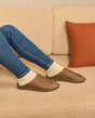 With "Alessio", you enjoy pure coziness – and in the most stylish way. These high-quality slippers made of fine cowhide leather impress with their durable quality and timeless design. The smooth leather gives them an elegant look that perfectly fits any living environment, while the lining made of pure virgin wool keeps your feet warm without overheating. The combination of natural materials and careful craftsmanship makes "Alessio" the ideal companion for relaxing hours at home – comfortable, breathable, and elegant at the same time.