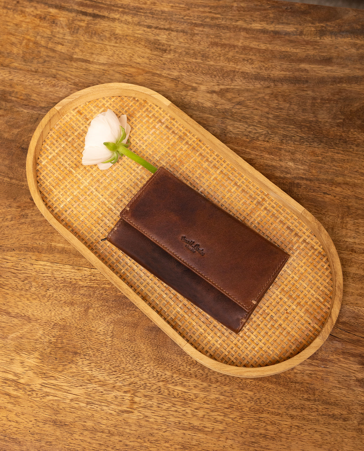 Discover our high-quality women's wallet "Angelique" made of brown leather – an elegant companion that perfectly combines design and functionality. Inspired by the urban Berlin flair, it is ideal for your everyday life, whether shopping in the city, at the café, or traveling. The genuine, durable leather ensures a noble look and a pleasant feel that becomes even more beautiful over time. "Angelique" stands for style, quality, and organization – everything you expect from a modern wallet.
