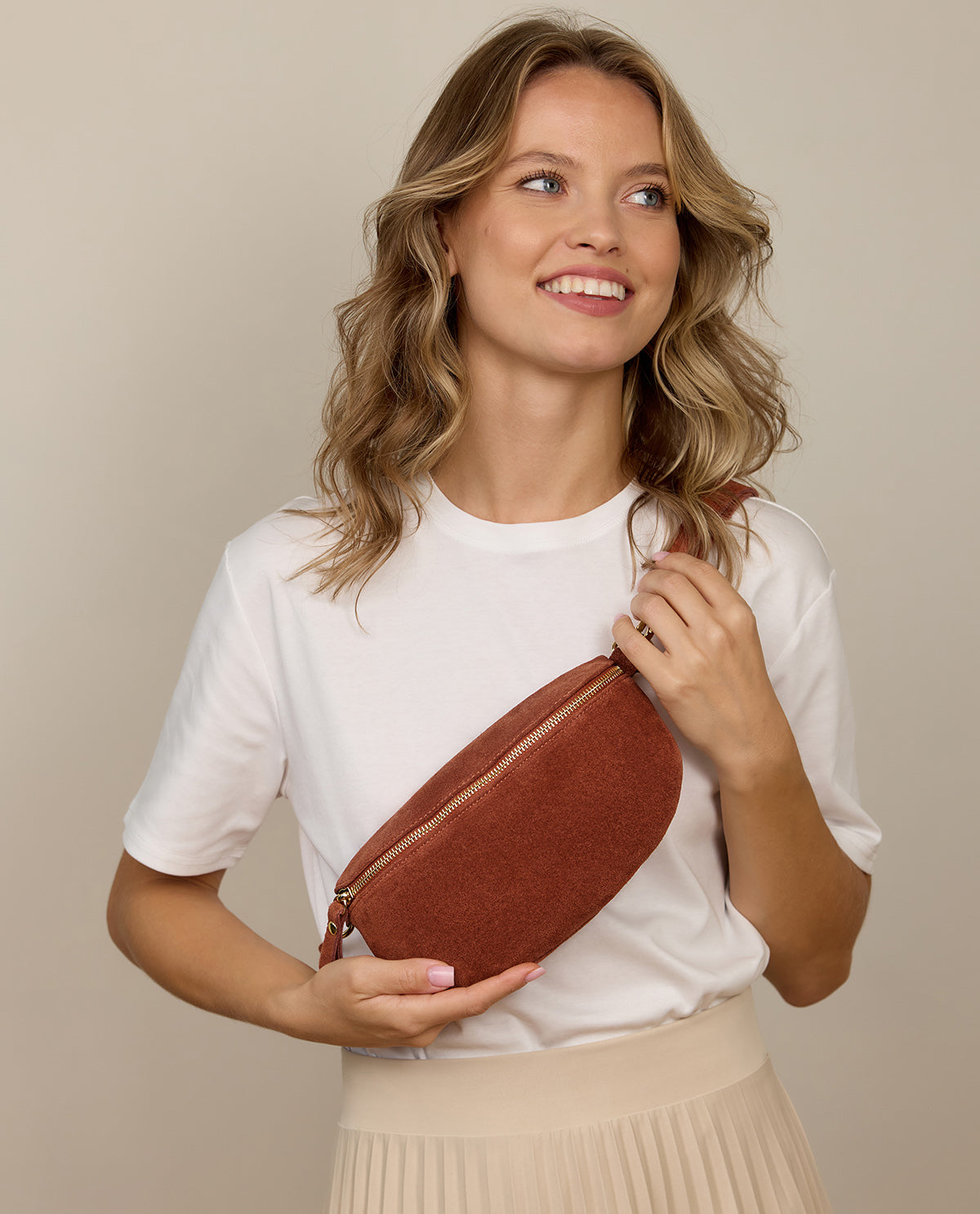 Belt bag bumbag fanny pack crossbody bag womens brown leather - Made in Italy