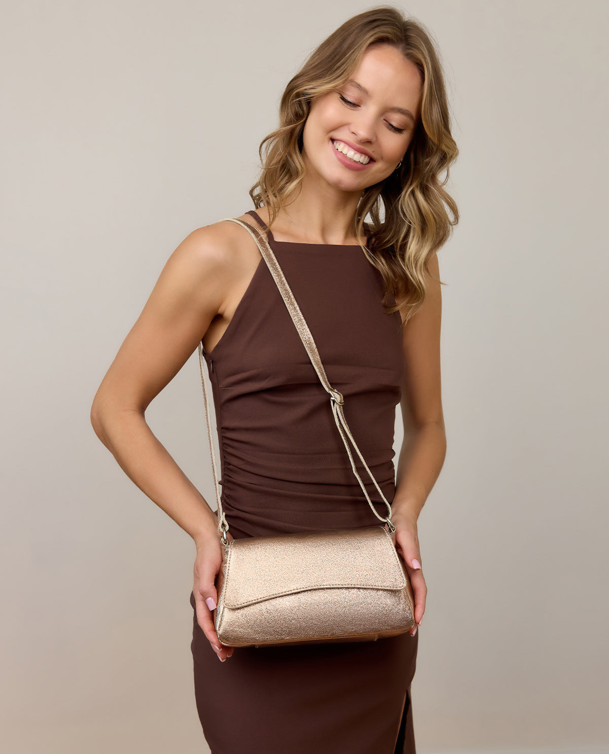 The "Danica" crossbody bag is the perfect companion for those who appreciate both style and functionality. With its shimmering finish and rectangular design with smooth edges, it adds an elegant touch. The practical magnetic closure on the front flap and the additional zipper at the top ensure that your valuables are always safely stored. The understated design makes the bag an ideal choice for both everyday use and special occasions.