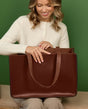 The extra-large interior of "Agatha" provides ample space for your 15-inch laptop, water bottle, wallet, notebooks, keys, and pencil case. Additionally, the large opening offers enough storage space for a spontaneous shopping trip. The leather carry handles complete the design, while the option to personalise "Agatha" with an engraving makes it a particularly unique gift. This bag not only meets the demands of your everyday life but also supports an industry committed to environmental protection and fair labor practices. A must-have for anyone who wants to combine functionality and style.