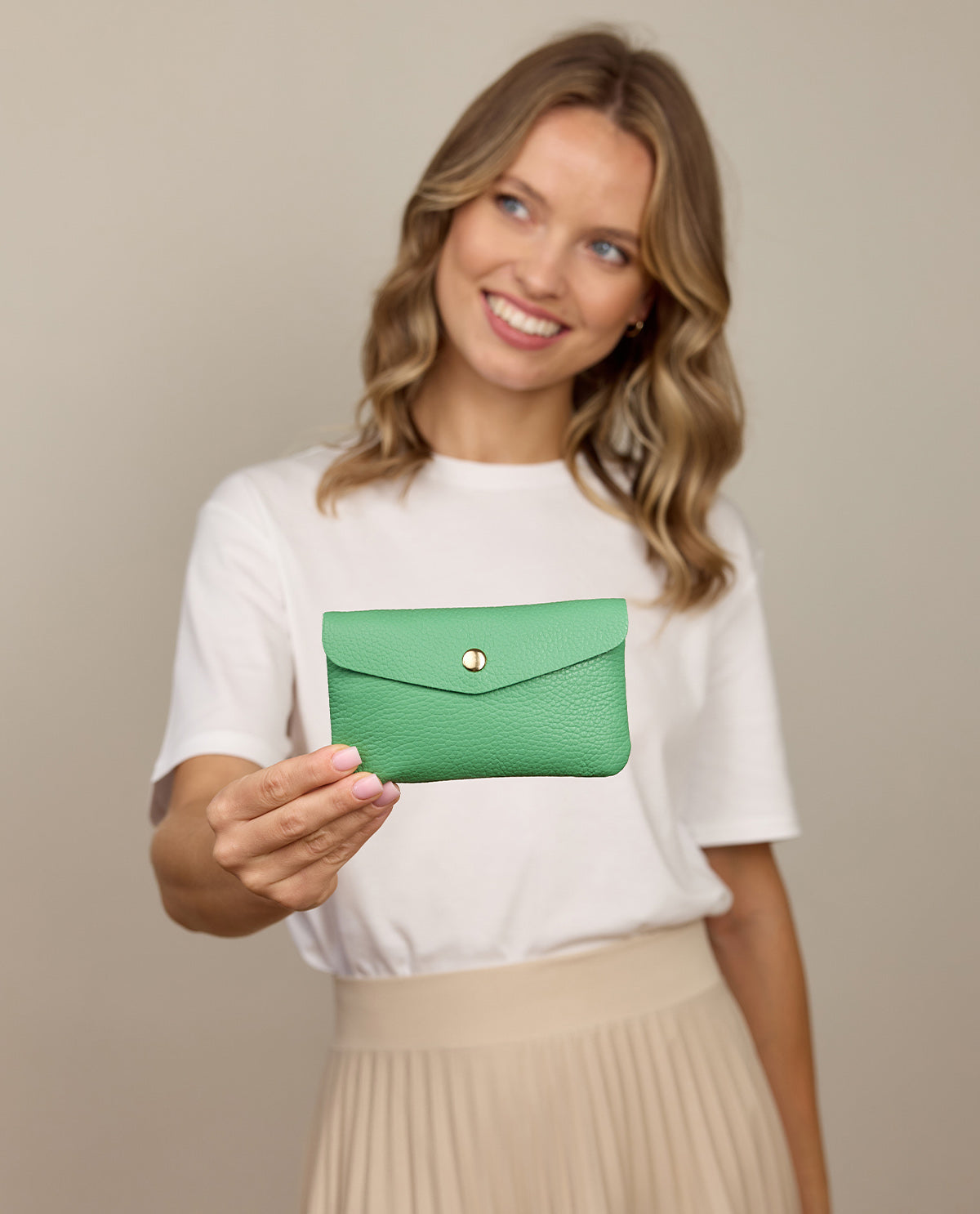 Storage bag organiser small leather bag womens green leather - Made in Italy