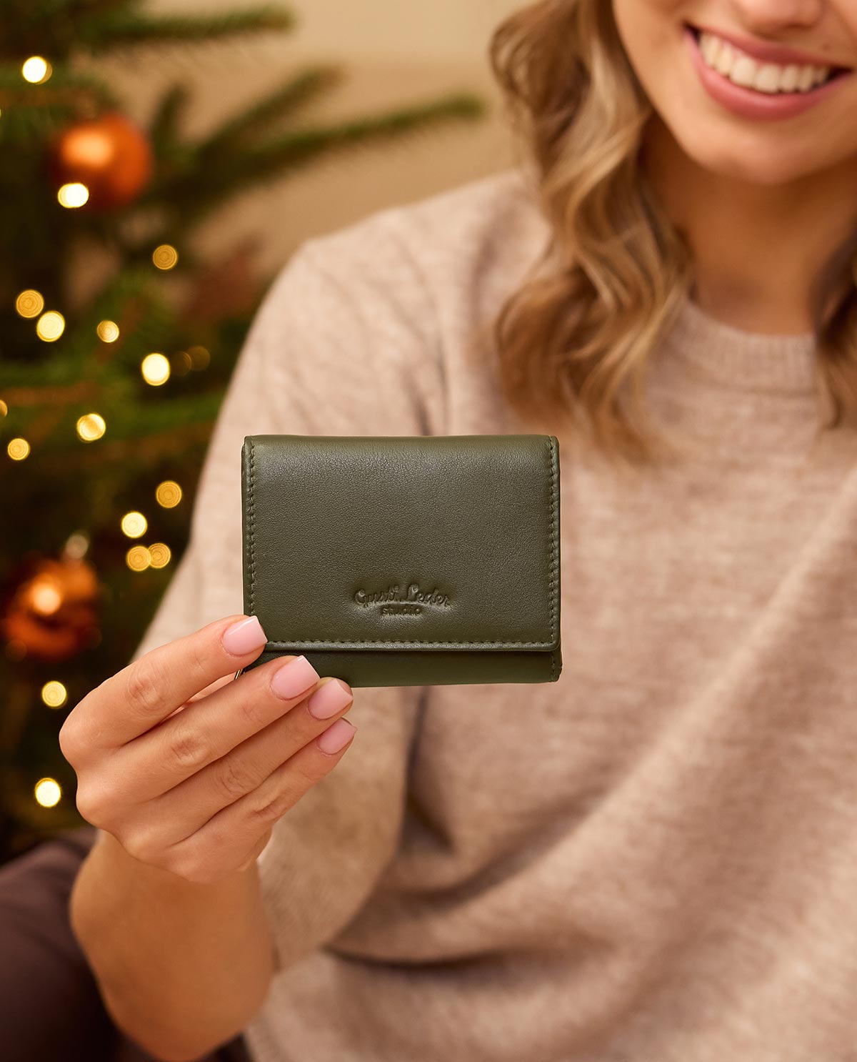 Geldbörse Mini Portemonnaie klein Geldbeutel Damen Herren Grün Leder