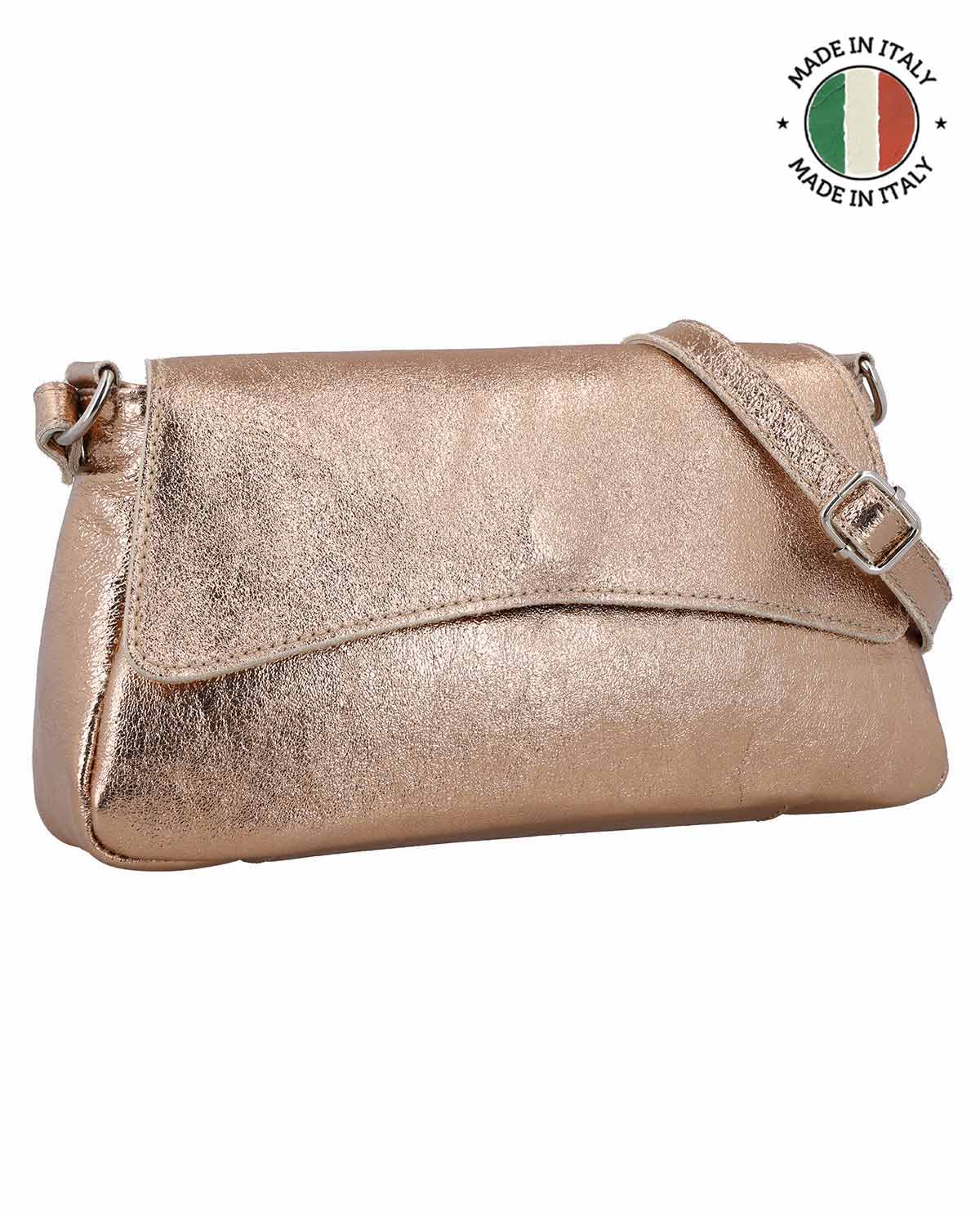 Umhängetasche Ledertasche Crossbody Tasche Damen Silber Leder - Made in Italy