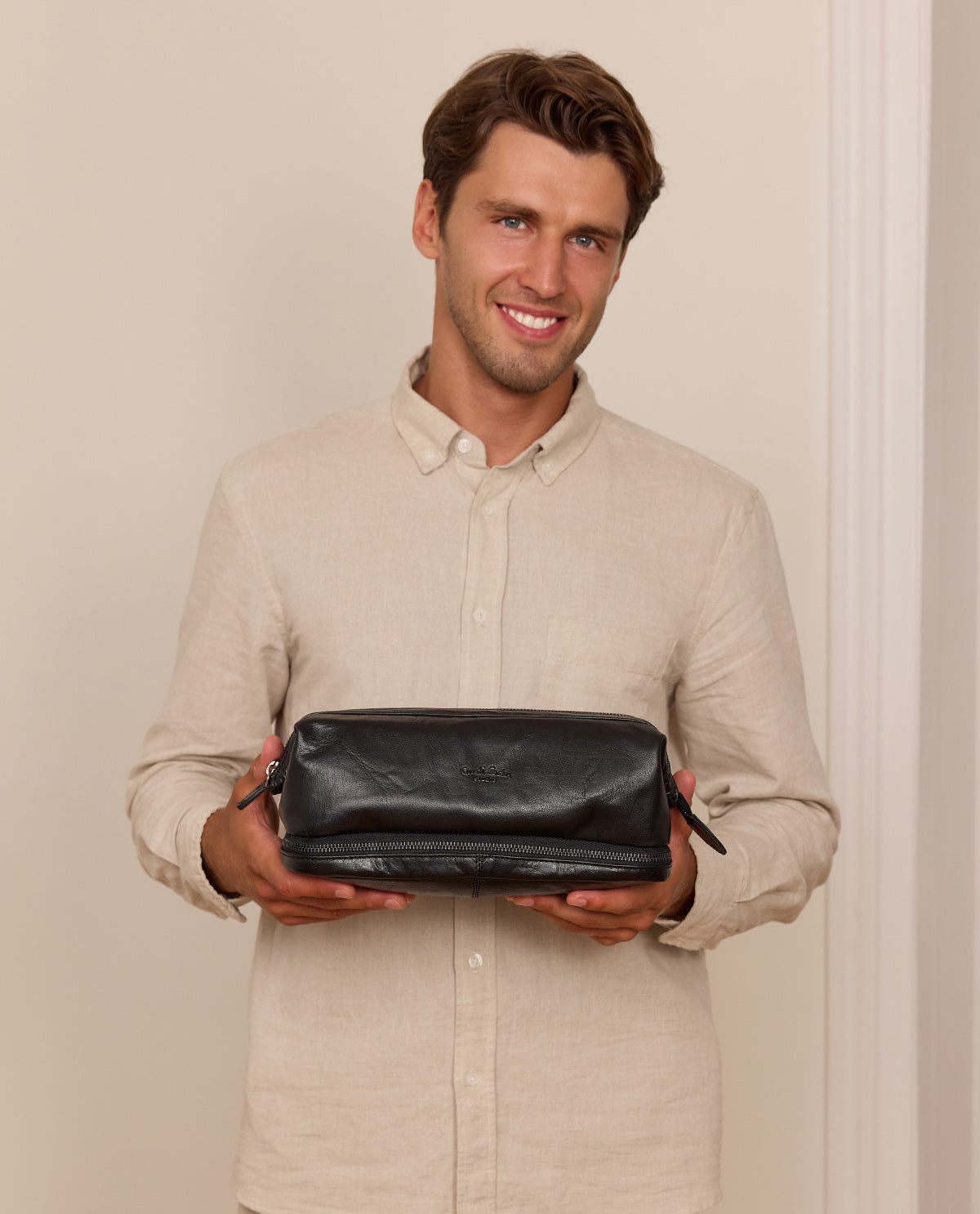 Waschtasche Kulturtasche Schminktasche Schwarz Leder