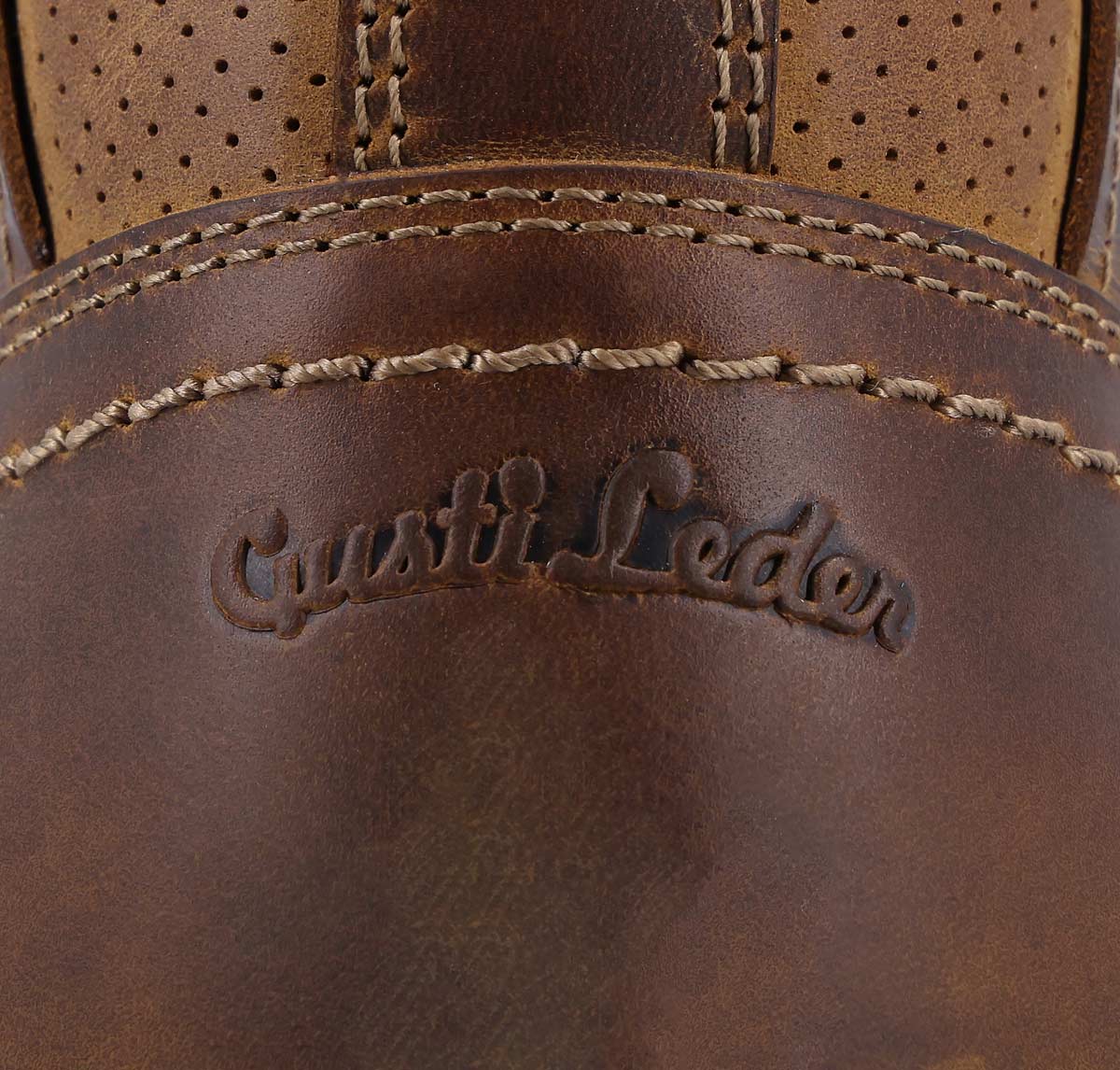 Im Inneren überzeugt "Oberon" mit einem karierten Textilfutter und einer Kombination aus Leder- und Stoffeinsätzen, die Atmungsaktivität und Tragekomfort garantieren. Die Innensohle aus Rindsleder bietet ein angenehmes Laufgefühl, während die Sohle aus Polyurethan Flexibilität und Stabilität kombiniert – ideal für lange Tage auf den Beinen. Ein geprägtes Gusti Leder Logo an der Ferse unterstreicht die hochwertige Verarbeitung und den zeitlosen Stil. Mit "Oberon" genießt Du einen Schuh, der Eleganz, Komfort und handwerkliche Qualität in perfekter Harmonie vereint – für den modernen Mann mit Sinn für Stil.