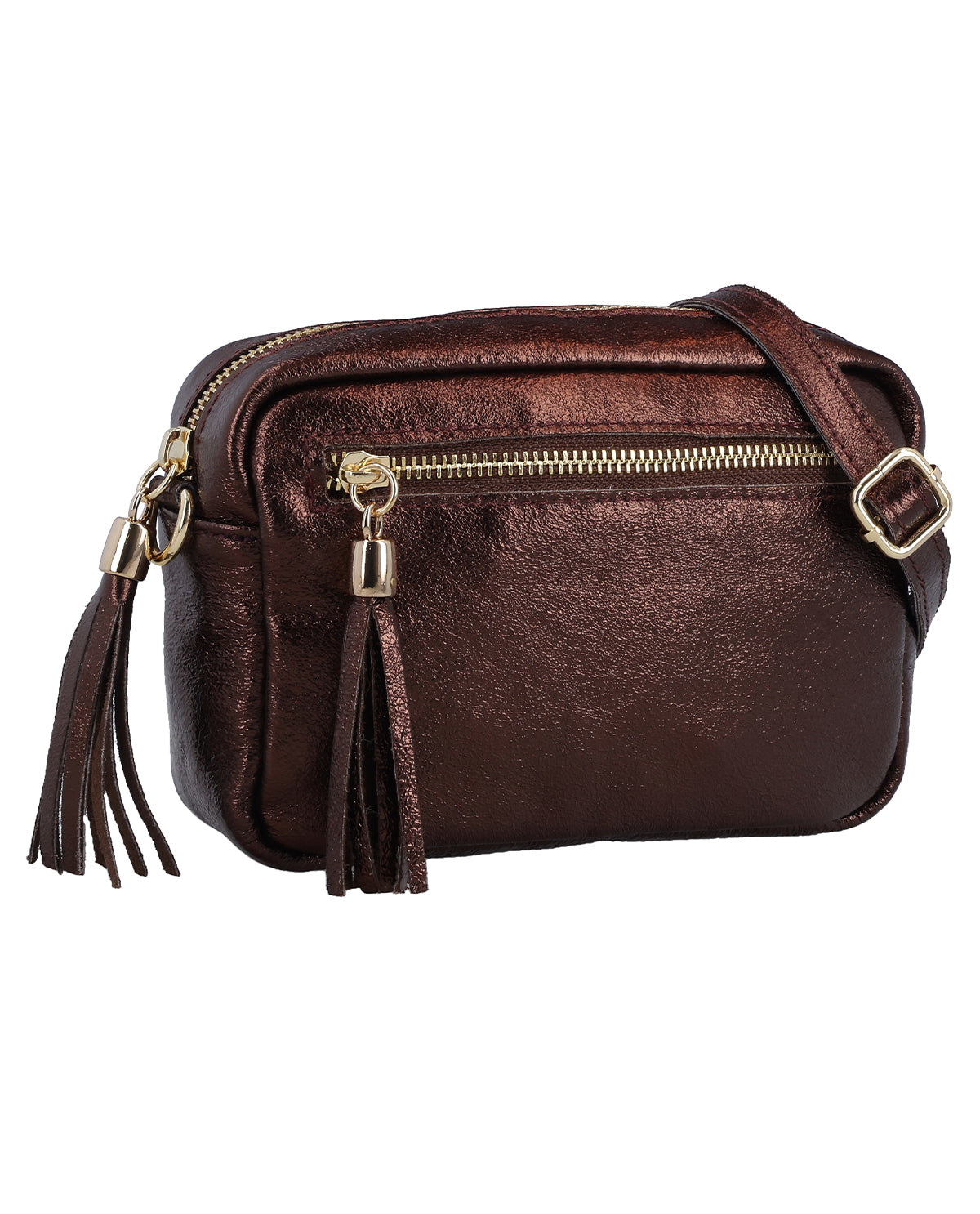 Umhängetasche Ledertasche Handtasche Crossbody Tasche Damen Schwarz Glänzend Leder - Made in Italy