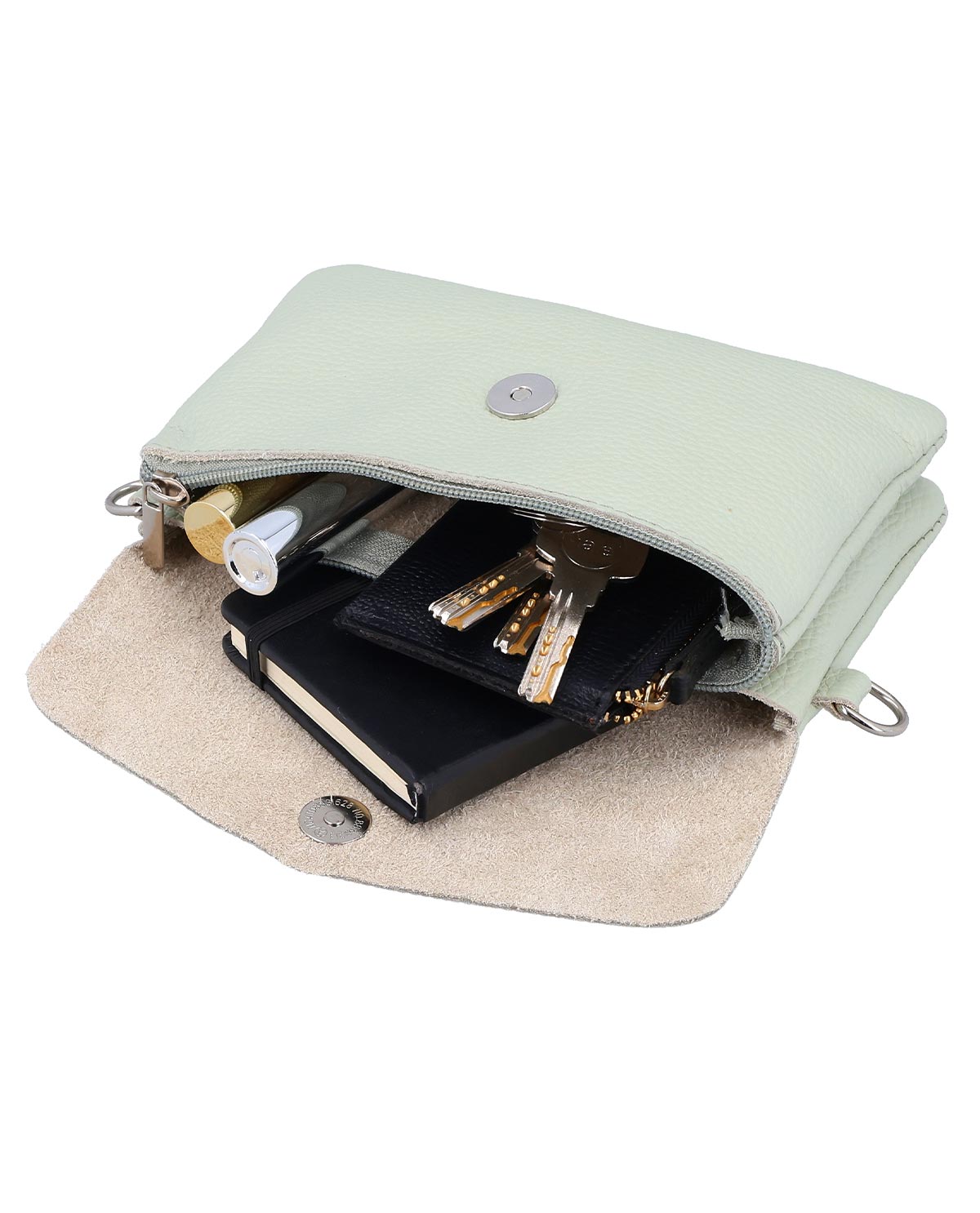 Umhängetasche Ledertasche Crossbody Tasche Clutch Handtasche Damen Hellblau Leder - Made in Italy