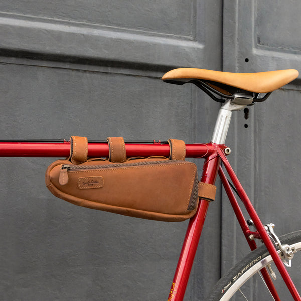 Unsere Lederriemen sind mit Schnallen oder Klettverschlüssen ausgestattet, sodass Du sie mühelos an verschiedenen Teilen Deines Fahrrads befestigen kannst – egal ob am Lenker, am Sattel oder am Rahmen (Oberrohr und Unterrohr).