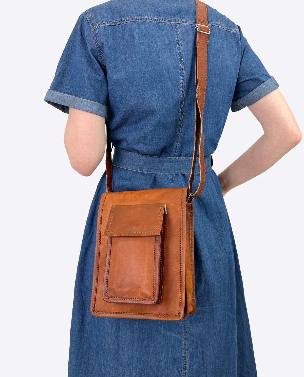 Unsere Ledertasche wird aus hochwertigem, pflanzlich gegerbtem Leder gefertigt. Das warme Braun verleiht der Tasche eine klassische Eleganz, die zu jedem Outfit passt. Die sorgfältige Verarbeitung und die robusten Nähte garantieren eine lange Lebensdauer und machen sie zu deinem treuen Begleiter im Alltag.