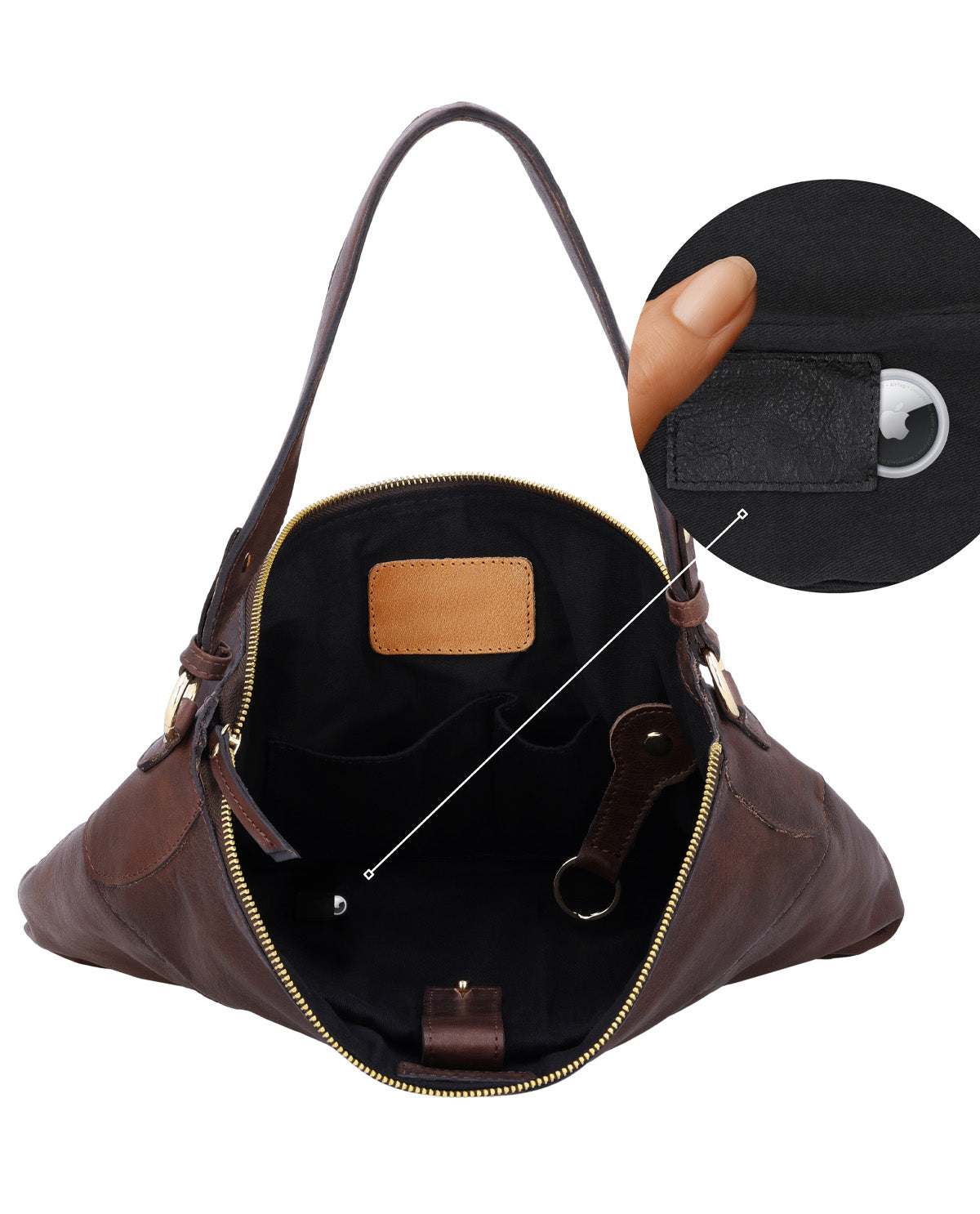Verschlossen wird "Hannah" mit einem robusten Reißverschluss, damit nichts herausfällt oder verloren geht. Innen findest Du genug Raum für Deine Trinkflasche, Geldbörse, Notizbücher, Schlüssel und Stifteetui. Besonders praktisch ist der integrierte Schlüsselringhalter, mit dem Du Deine Schlüssel sicher befestigen und dennoch schnell zur Hand hast. Zusätzlich verfügt "Hannah" über ein geheimes AirTag-Fach, das unauffällig am Taschenboden oder direkt unter dem Reißverschluss angebracht ist – für extra Sicherheit unterwegs. Auf der Rückseite gibt es ein aufgesetztes Reißverschlussfach, ideal für Smartphone oder Kopfhörer, sodass Du alles stets griffbereit hast. Unsere Produkte stammen von Produzenten, die höchste Standards in Qualität, Nachhaltigkeit und faire Arbeitsbedingungen erfüllen. Mit Deiner Wahl unterstützt Du eine verantwortungsbewusste Industrie, die sich für Umweltschutz und faire Arbeitspraktiken einsetzt – so zeigst Du nicht nur Deinen Stil, sondern auch Dein ethisches Bewusstsein.