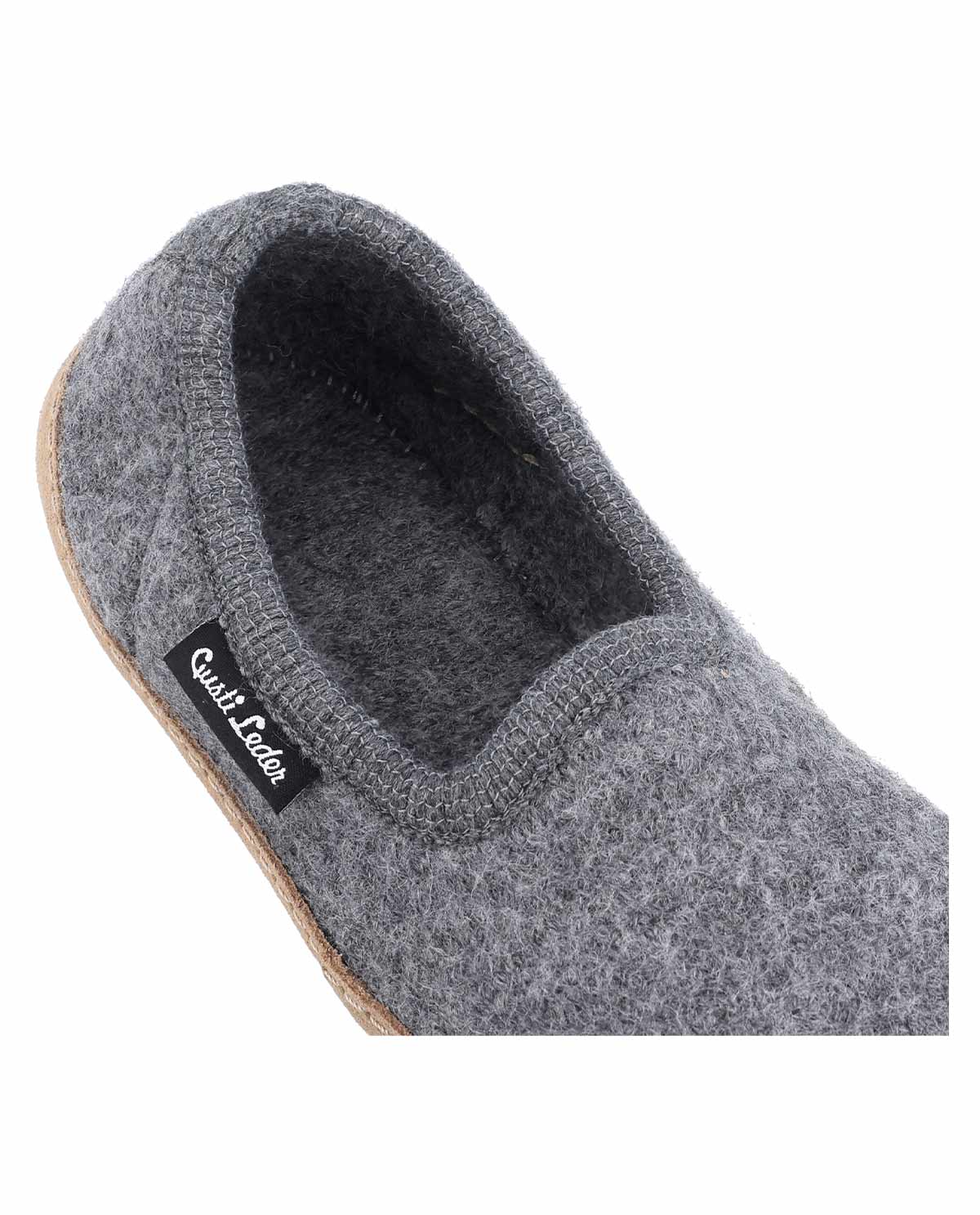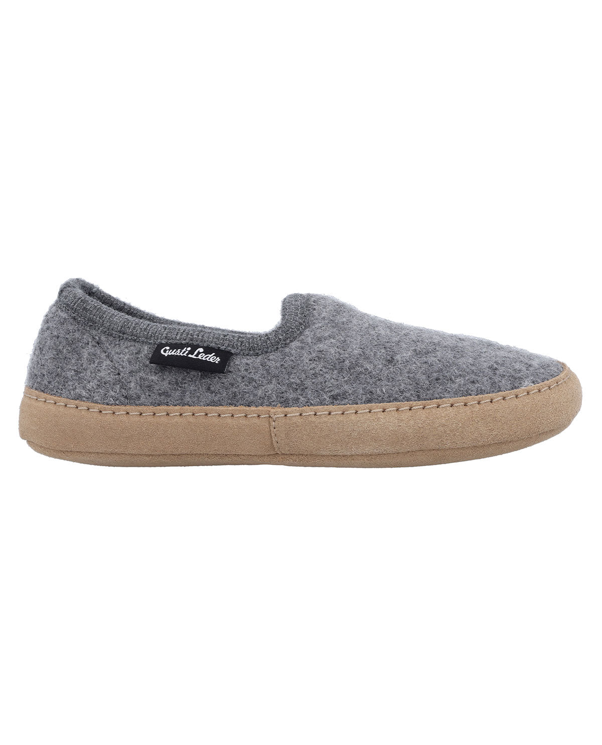 Die Laufsohle aus echtem Leder sorgt für eine flexible Basis und stille Schritte auf allen Bodenbelägen, während die gepolsterte Innensohle aus Schurwolle ein federndes Laufgefühl vermittelt, als würdest Du auf Wolken gehen. Die Hausschuhe werden in Europa – in Österreich und Ungarn – hergestellt und stehen für nachhaltige Verarbeitung und natürliche Materialien. Ein kleines Stofflabel mit dem weißen "Gusti Leder"-Logo sowie ein gewebtes Größenlabel im Fersenbereich runden die hochwertige Verarbeitung ab. Mit "Marah" genießt Du Komfort, Stil und Umweltbewusstsein in einem Schuh.