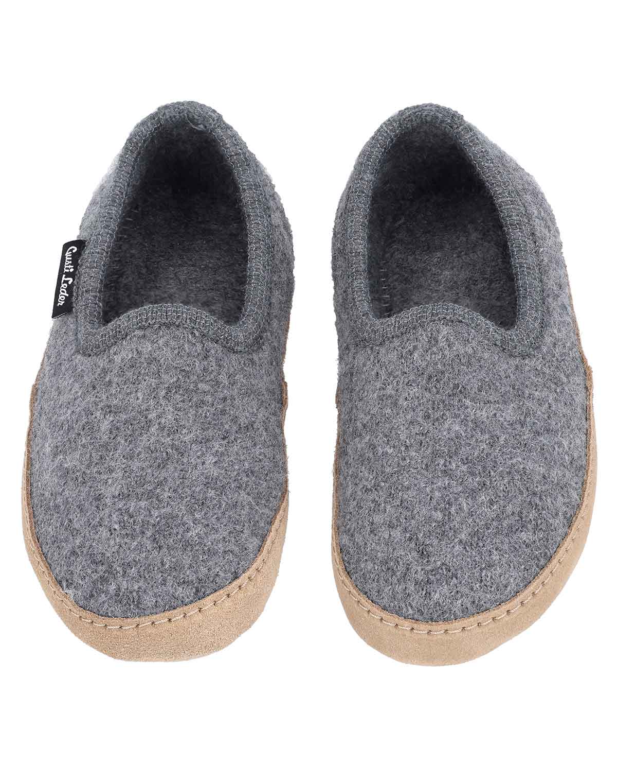 Hausschuhe Slipper Pantoffeln Schuhe Schurwolle Grau Leder