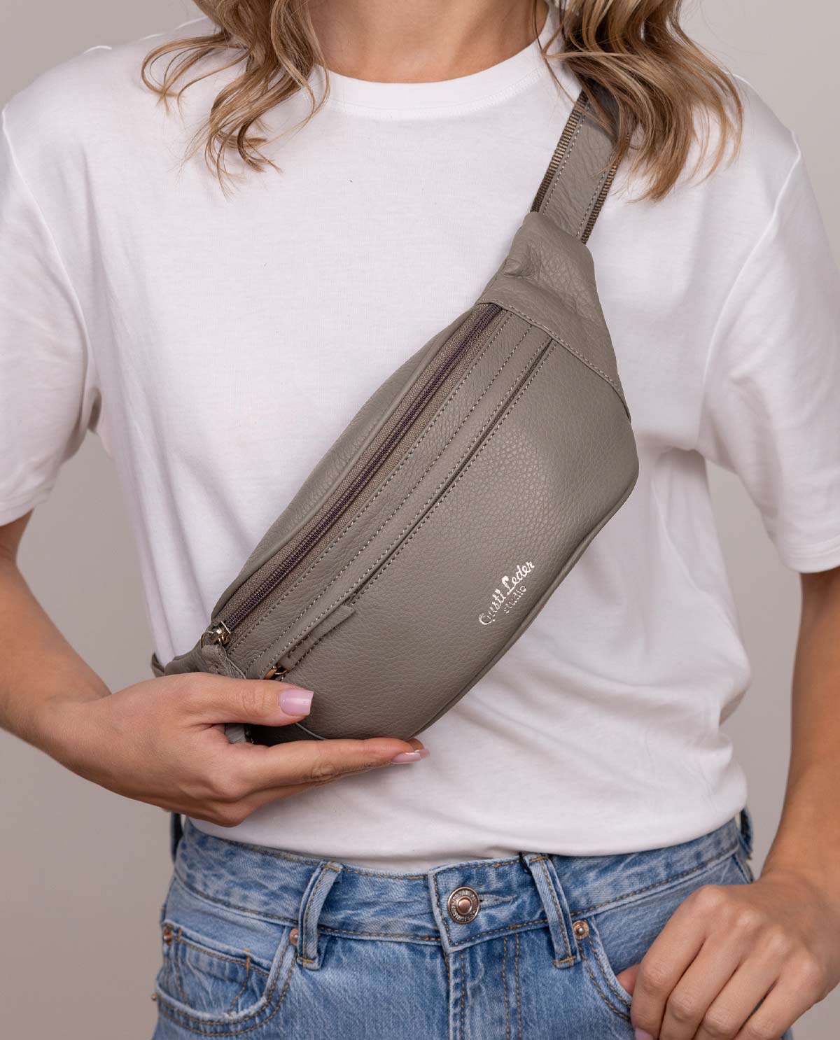 Limited Edition - Gürteltasche Bauchtasche Umhängetasche Tasche Grau Leder