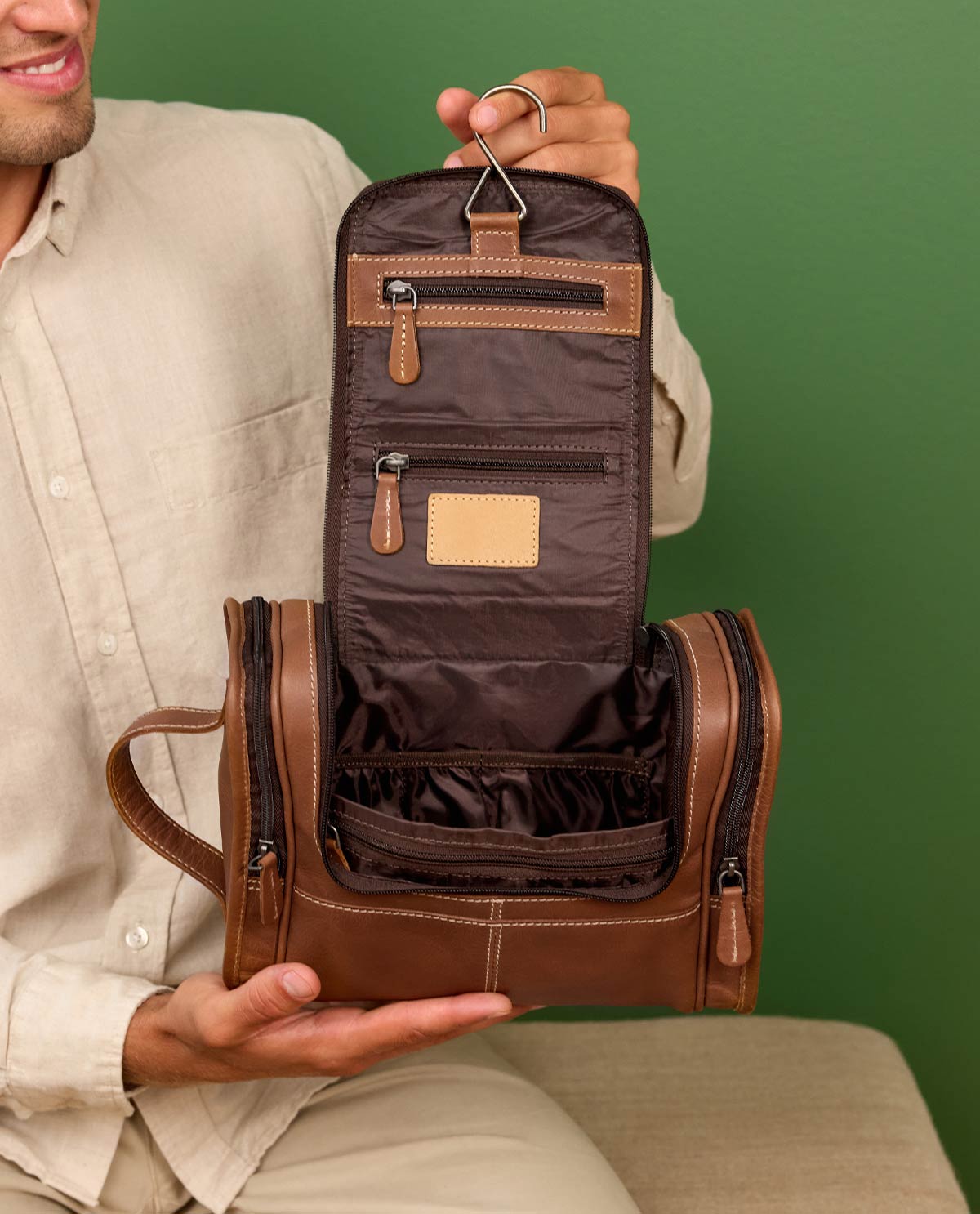 Praktisch und elegant – die "Chester" Kulturtasche aus braunem Leder