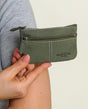 Das Schlüsseletui im praktischen Hosentaschenformat ist nämlich mit zwei separaten Fächern ausgestattet, die beide mit einem Reißverschluss schließen. Das größere Fach wartet - wie es sich für ein Schlüsseletui gehört - mit einem inneliegenden Schlüsselring für Deine Schlüssel auf, ist aber auch groß genug, um Geldscheine oder sogar ec-Karten sicher darin verstaut zu wissen. Das aufgesetzte kleinere Fach eignet sich derweil hervorragend für etwas Münzgeld oder einen Einkaufs-Chip.