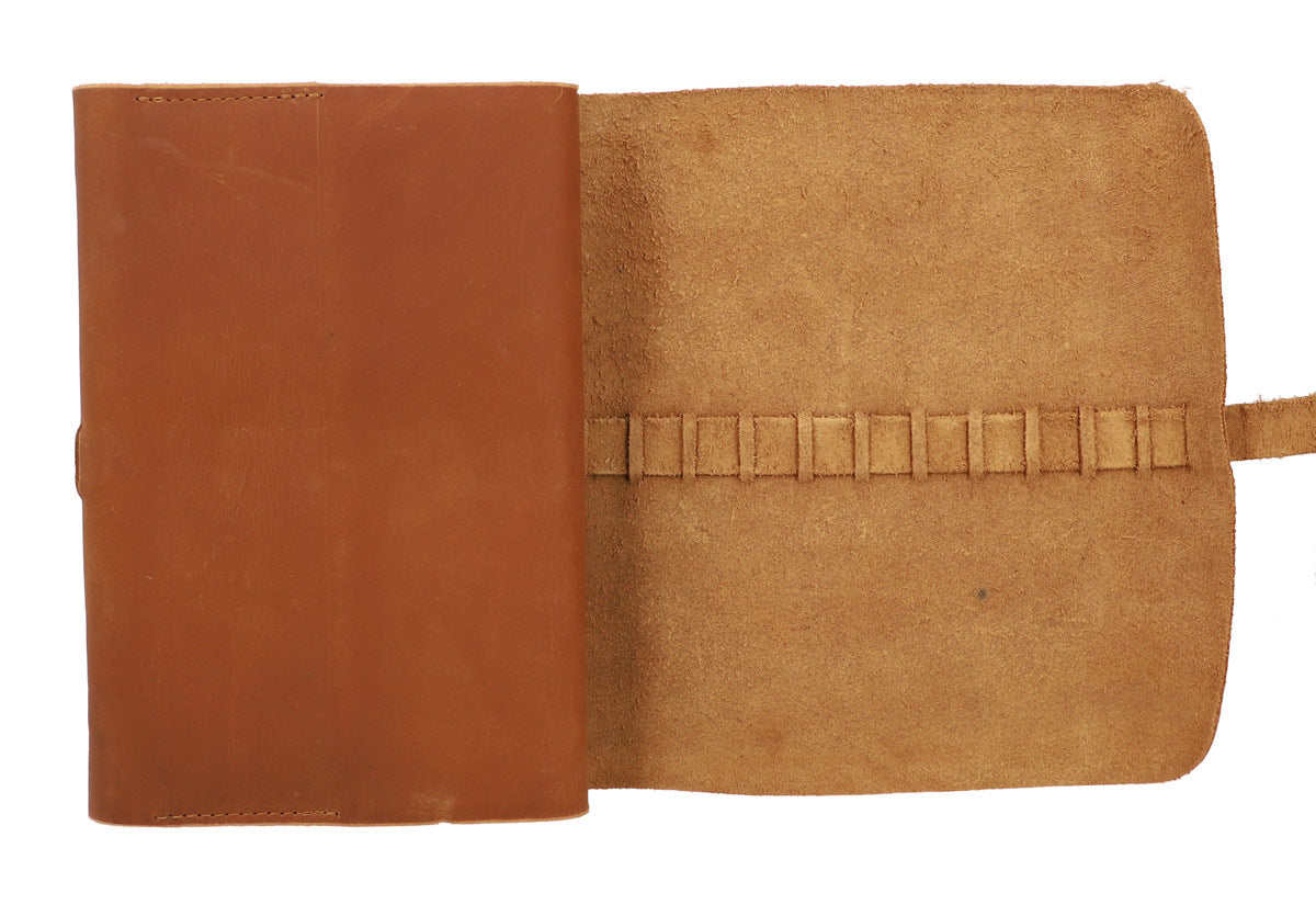 "Elinor" bietet genug Platz um sich kreativ auf ihren Blankoseiten auszutoben. Im angesagten Vintage-Design überzeugt der Einband aus Büffelleder, der sich besonders durch seine Robustheit und Stabilität auszeichnet. Daher kannst du "Elinor" genauso gut als Ledereinband benutzen, sollten die eingelegten Seiten ein mal vollgeschrieben sein. Das Lederband sowie der leichte Used look gibt "Elinor" dabei den finalen Schliff und Charme. Dabei überzeugt sie nicht nur durch ihre praktische Größe, sondern fässt sich auch haptisch angenehm an. Nachhaltigkeit mit maximaler Funktionalität!