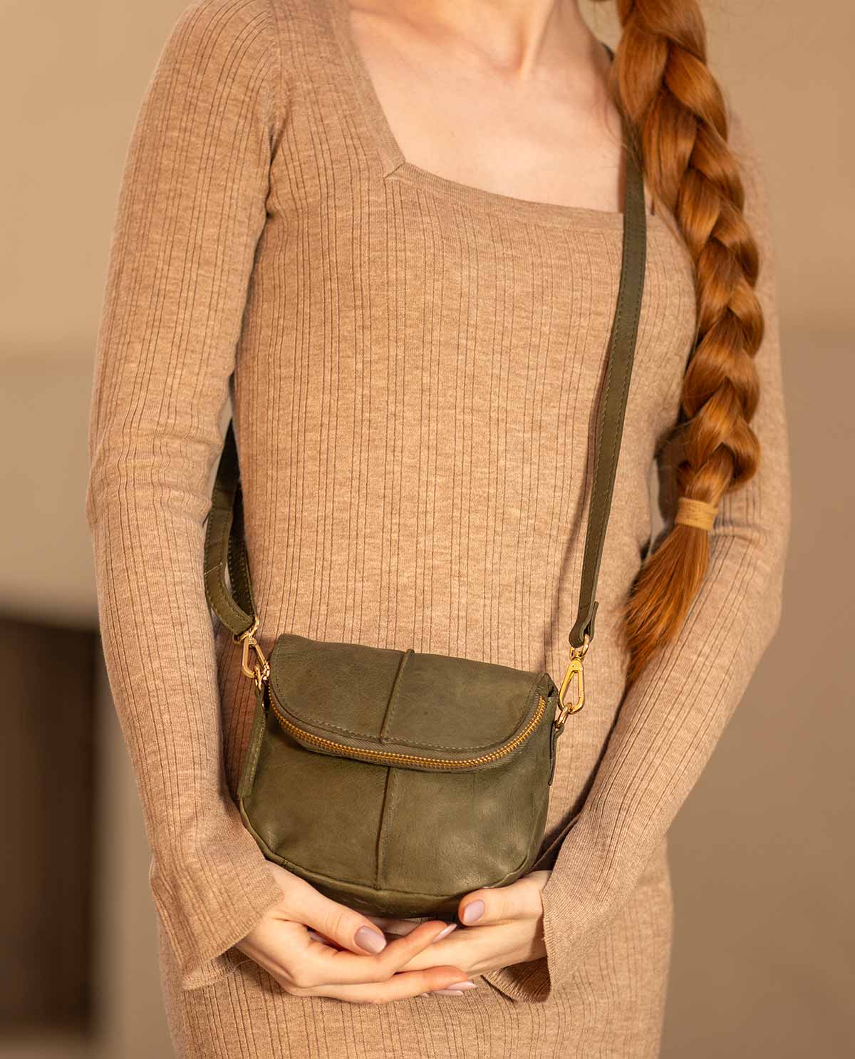 Pflanzlich gegerbt Handtasche Umhängetasche Schultertasche Damen Khaki Leder
