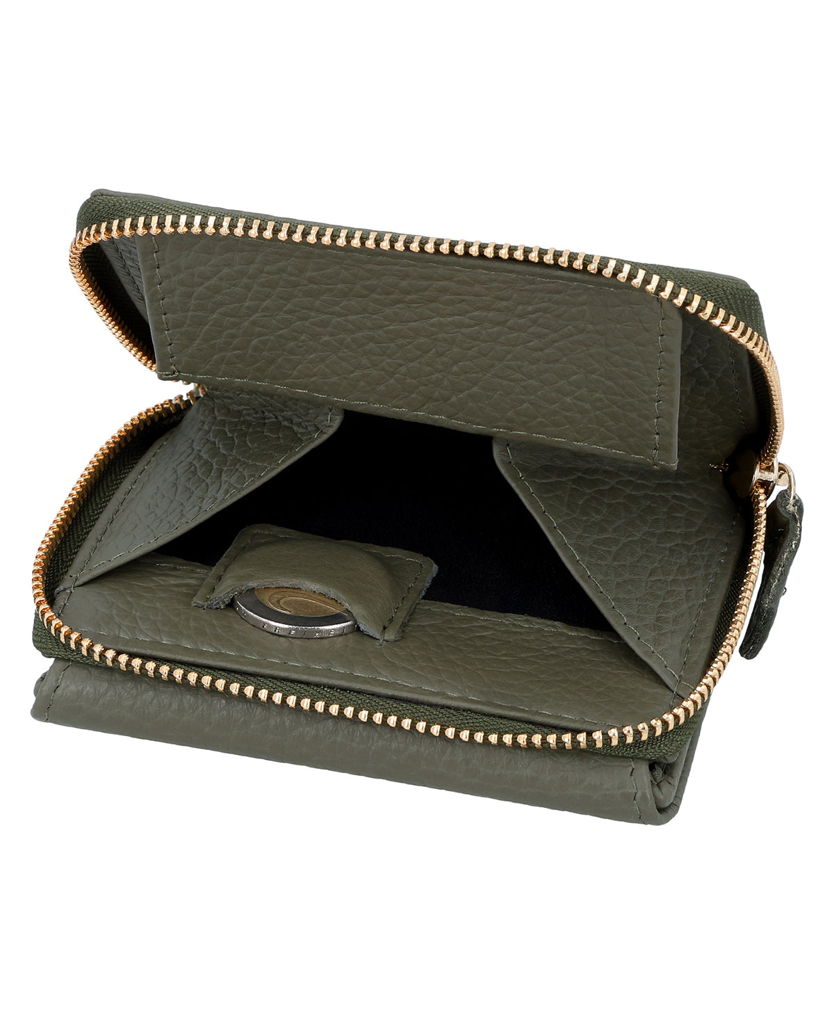 Im Inneren verfügt „Brigitta" über ein Geldscheinfach, ein ausklappbares Sichtfenster, Platz für bis zu 6 Karten und ein separates Münzfach, welches per Reißverschluss abgeschlossen wird. Im Münzfach findest Du außerdem einen extra Steckplatz für eine 1-€-Münze, ideal für Einkaufswagen oder Schließfächer. So purzelt nichts ungehindert in die Tasche. Aus hochwertig verarbeitetem Rindsleder wird das Portemonnaie mithilfe eines Druckknopfs verschlossen. Ab in die Tasche – es kann losgehen mit Brieftasche „Brigitta"!