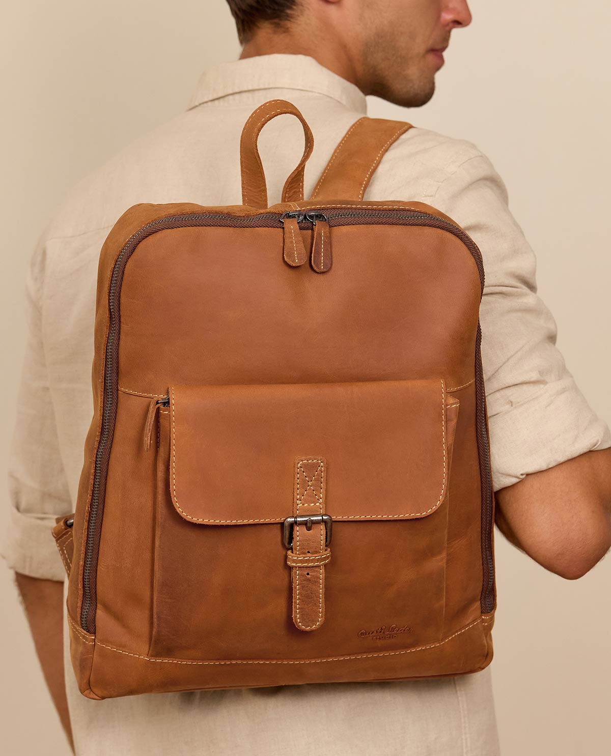 Hoher Komfort, Funktionalität und viel Platz bietet dir unser "Ove". Dieser schicke Lederrucksack aus hochwertig verarbeitetem Büffelleder eignet sich wunderbar als Begleiter für Freizeit, Urlaub, für einen kleinen Stadtbummel, aber auch für den alltäglichen Gang ins Office. Dabei punktet er in zeitloser Eleganz und Lässigkeit!
