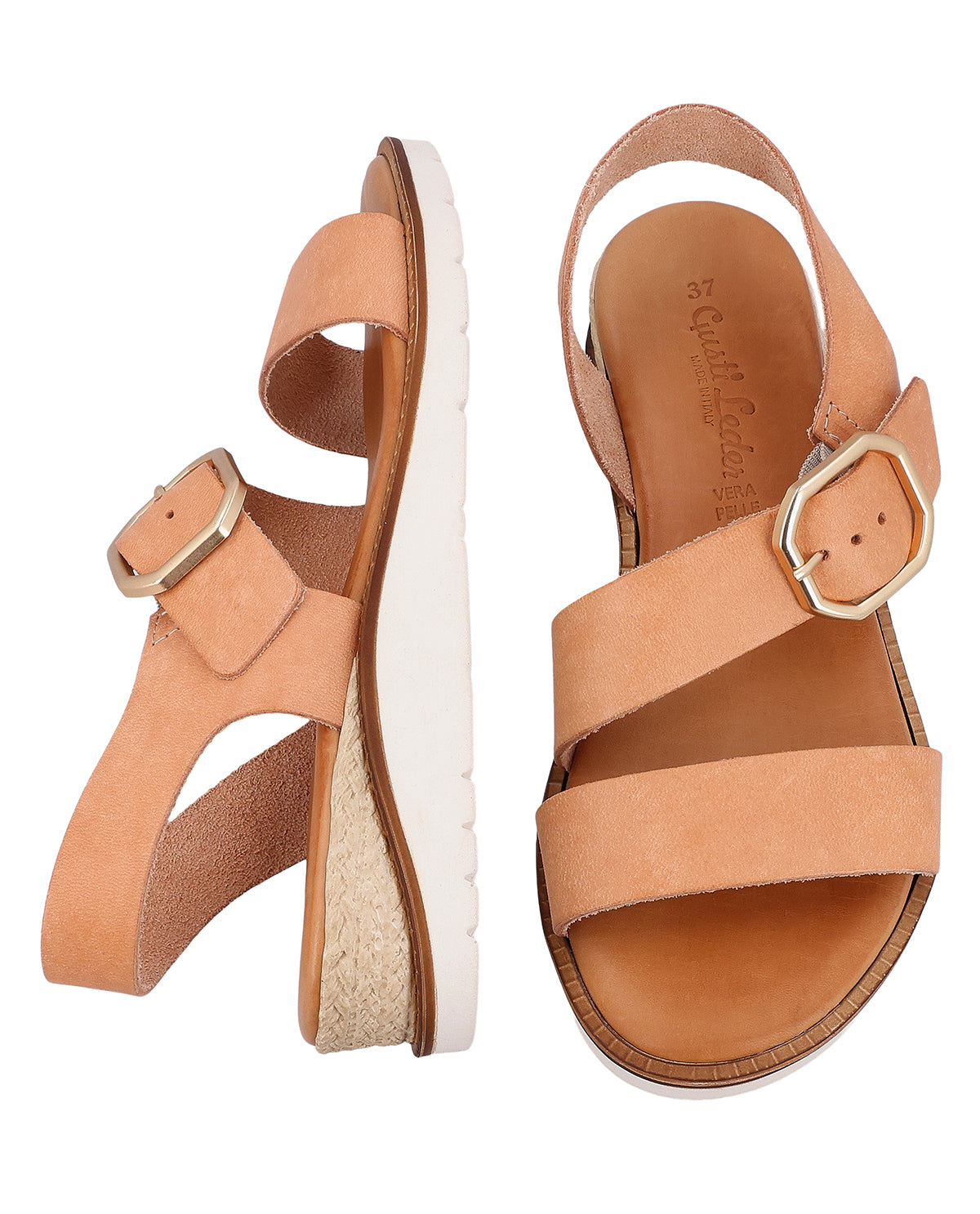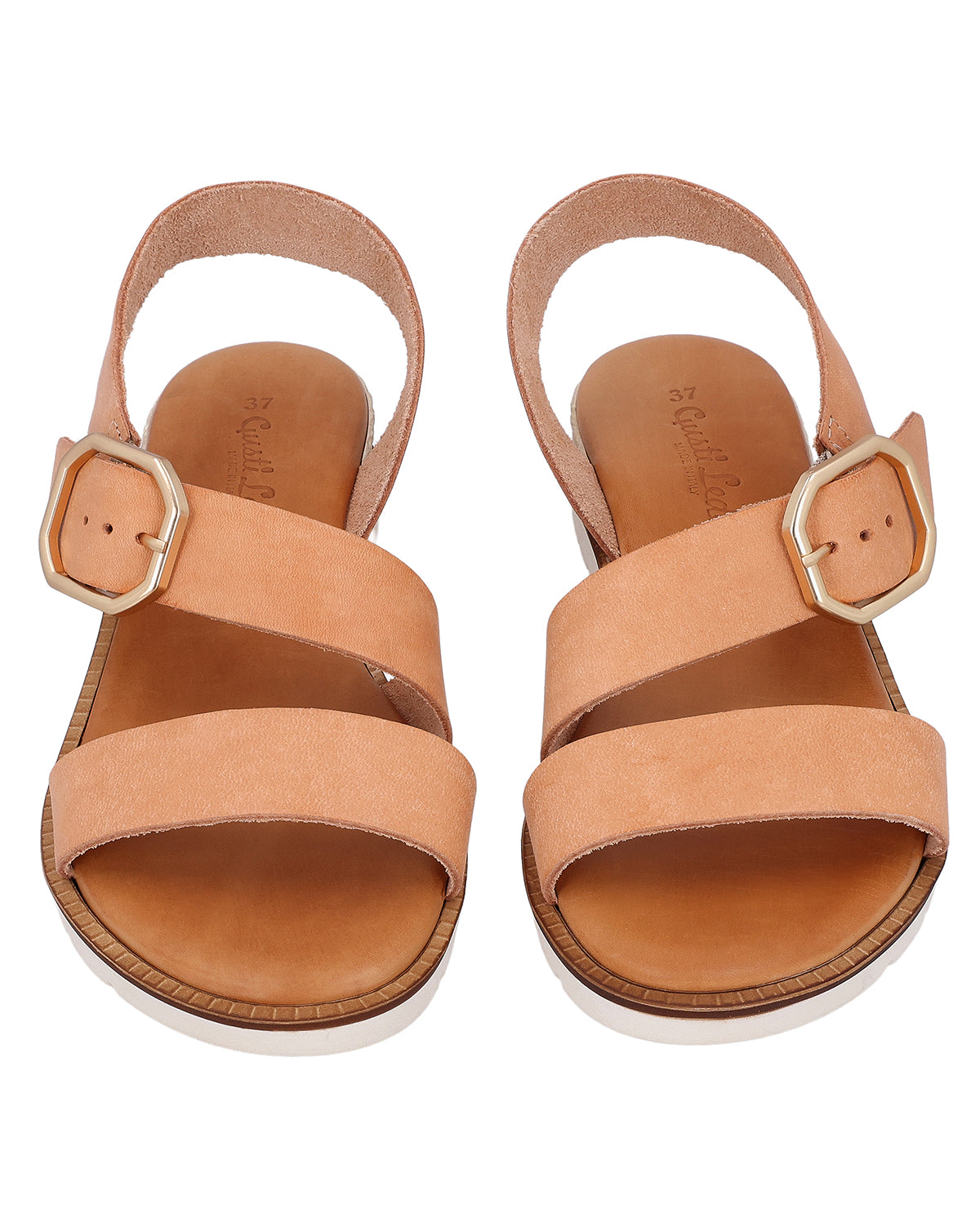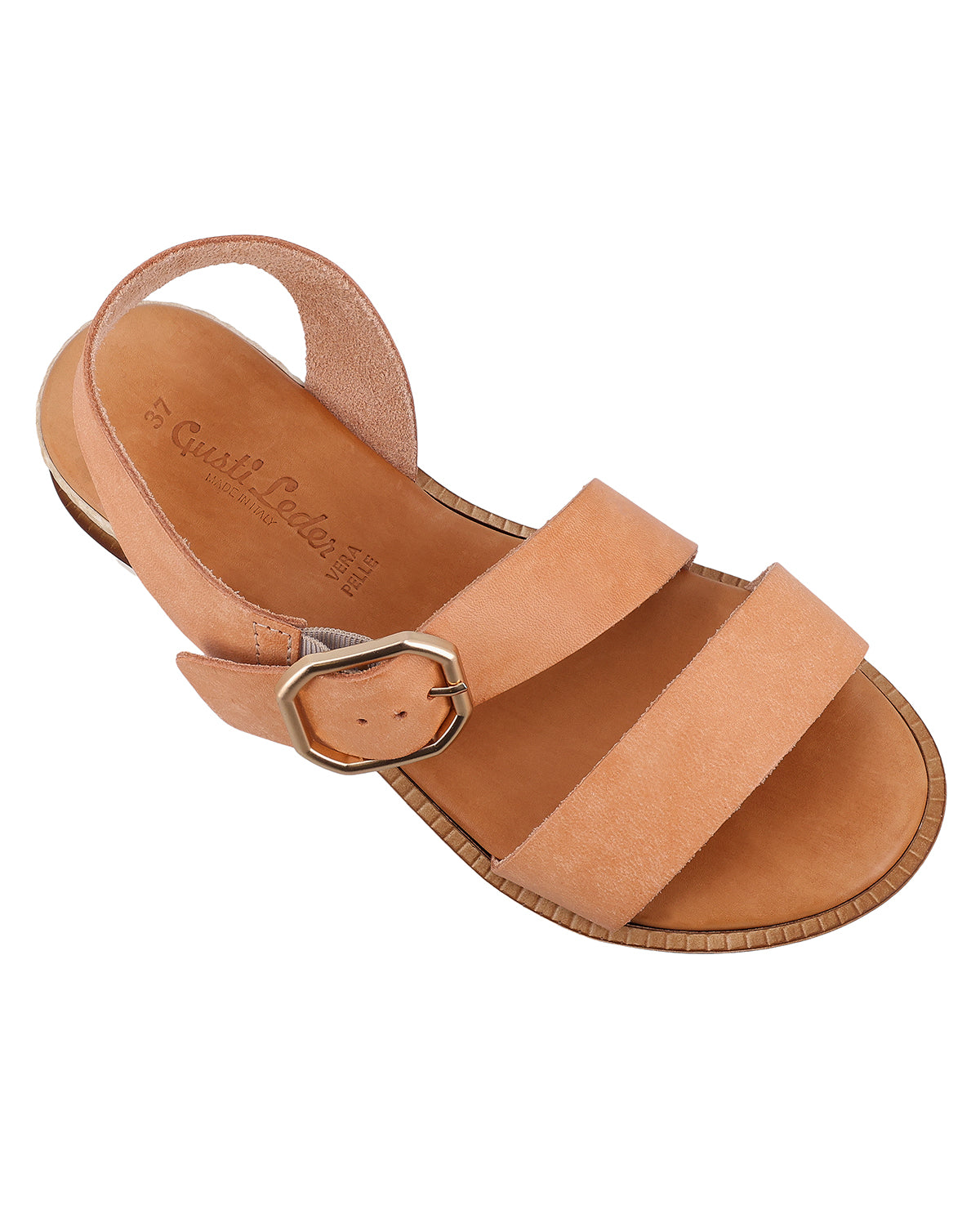Leder-Sandale mit beigen Riemen und silberner Schnalle