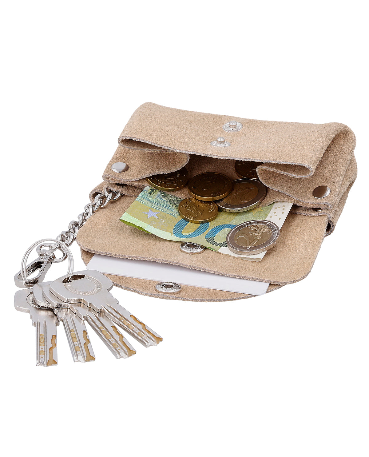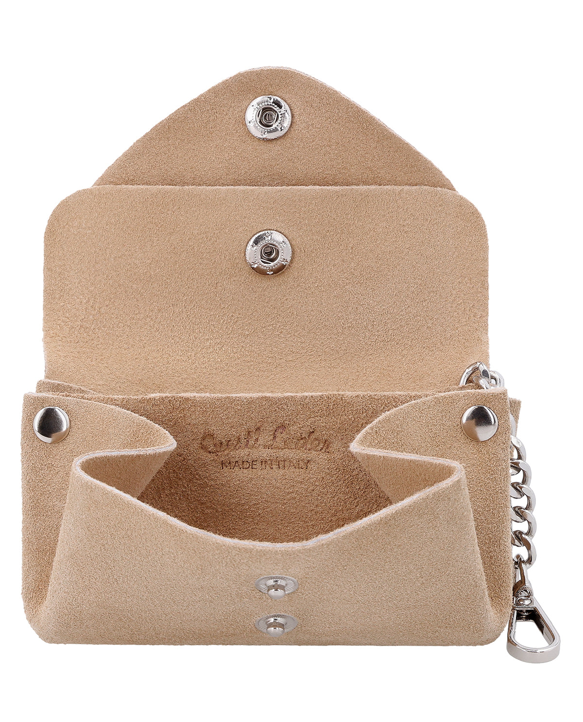 Das Schlüsseletui "Mathilda" vereint italienische Handwerkskunst mit einer stilvollen, praktischen Gestaltung. Gefertigt in Italien aus hochwertigem Leder, liegt es angenehm in der Hand und begleitet Dich als dezentes, aber edles Accessoire im Alltag. Der sichere Druckknopfverschluss sorgt dafür, dass Deine Schlüssel stets geschützt sind, während der robuste Metallschlüsselhaken Deine wichtigsten Schlüssel fest an Ort und Stelle hält. Dank der kompakten Form passt "Mathilda" mühelos in jede Tasche – ideal, wenn Du Ordnung und Eleganz gleichermaßen schätzt.