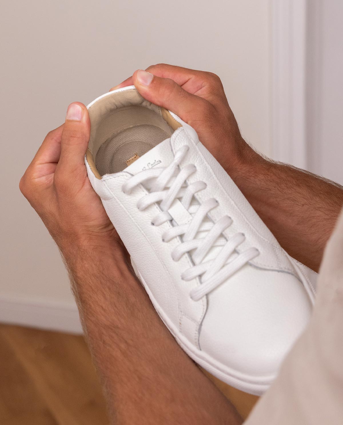 Der "Mando" Sneaker ist die perfekte Wahl für alle, die einen lässigen und zugleich eleganten Look suchen. Hergestellt aus hochwertigem Rindsleder, bietet er nicht nur eine stilvolle Optik, sondern auch außergewöhnlichen Komfort. Die weiße Farbe verleiht dem Sneaker eine zeitlose Ausstrahlung, die sowohl im Alltag als auch bei besonderen Anlässen bestens zur Geltung kommt. Die Eva-Sohle (Ethylenvinylacetat) sorgt für eine leichte, flexible und zugleich langlebige Basis, die Dir den ganzen Tag über ein angenehmes Tragegefühl bietet.