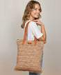 Shopper Strandtasche Raffia Tasche Handgewebt Damen Natur Leder