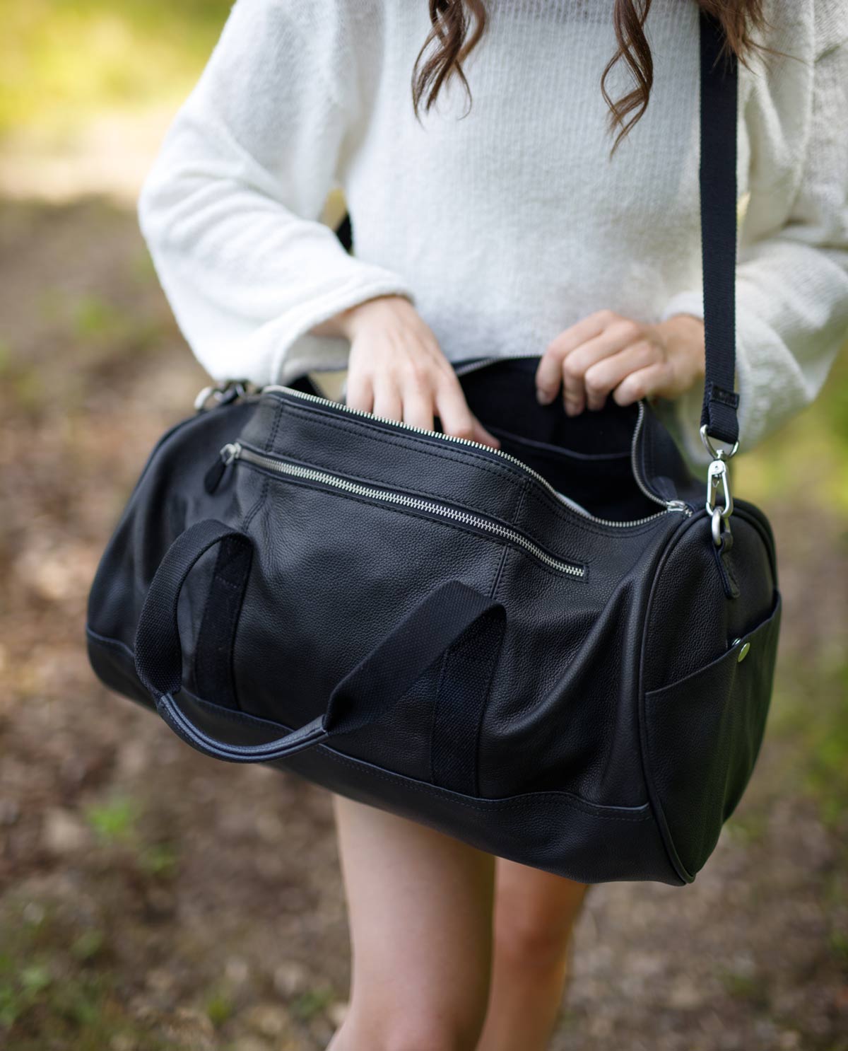 Reisetasche Weekender Sporttasche Handgepäck Ledertasche Schwarz Leder