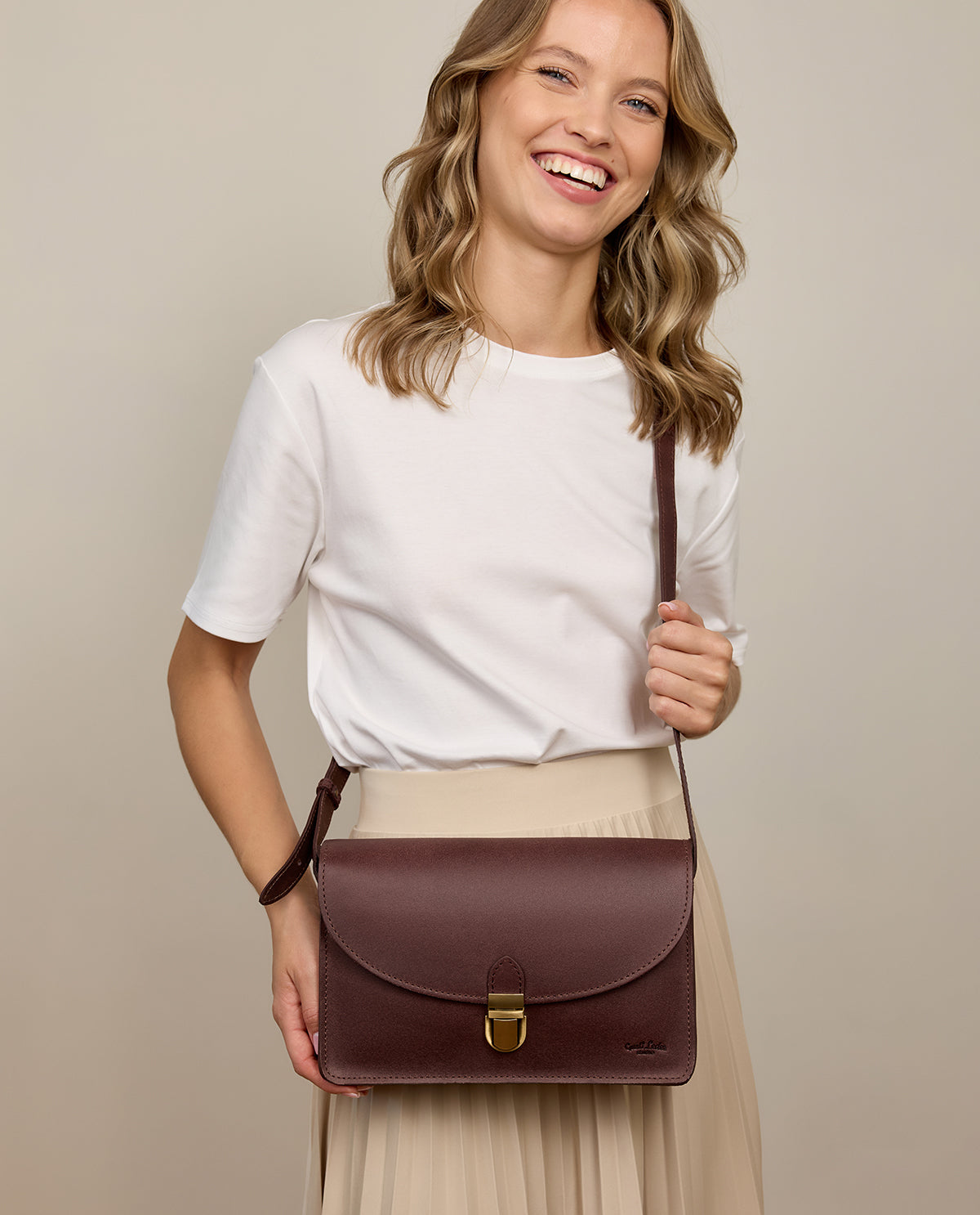 In dieser klassischen Handtasche mit ihren zwei zusätzlichen Innenfächern nimmst Du alles mit, was Du im Alltag oder für einen Abend mit Deinen Liebsten brauchst! Nicht nur Dein aktuelles Lieblingsbuch findet hier ihren Platz. „Zoey“ kannst Du auch einfach mit auf die nächste Party nehmen, denn ihr Look ist nicht nur elegant, sondern zugleich auch partytauglich. Der matt-goldene Schnappverschluss ist einfach zu handhaben und macht den edlen Vintage-Look von „Zoey“ komplett. Inspiriert durch den lebendigen Berliner Großstadt Flair vereint „Zoey“ urbanen Stil mit zeitloser Eleganz.