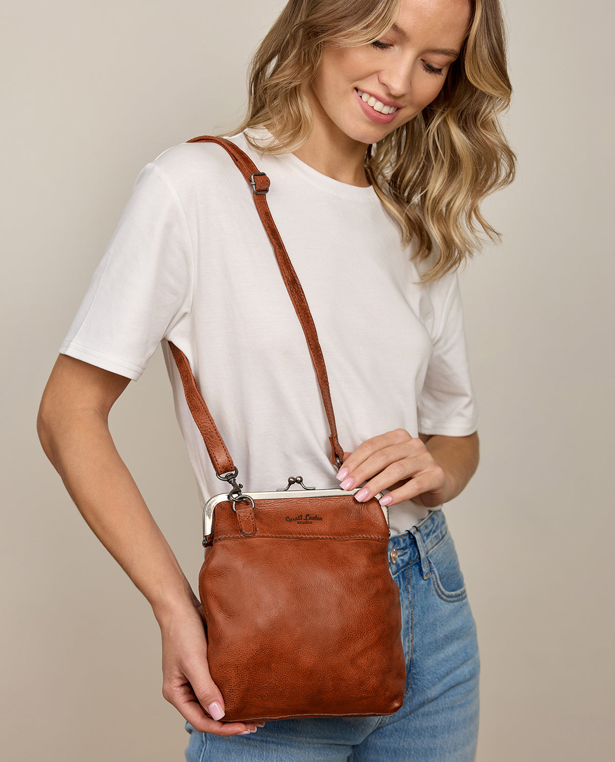 Magst du es bodenständig, aber doch ein klein wenig ausgefallen? Lässigkeit mit einer Prise Flair? Dürfen wir vorstellen – "Karlotta"! Deine neue Tasche im Geldbörsenstil. Für die extra Portion Retro in deinem Alltag – probier es mal mit "Karlotta", die durch den Berliner Großstadt Flair inspiriert wurde. Sie bringt urbanen Stil und Funktionalität in dein Leben, egal ob auf einem Spaziergang oder beim Shoppen in der Stadt. Innen besticht die Tasche mit einem großen Hauptfach und Retro Metallverschluss. So kann dein Hab und Gut nicht rausfallen und ist bestens geschützt. Das robuste Rindleder vollendet das Design. Hier finden Notizbücher, Handy, Lippenstift und Portemonnaie Platz.